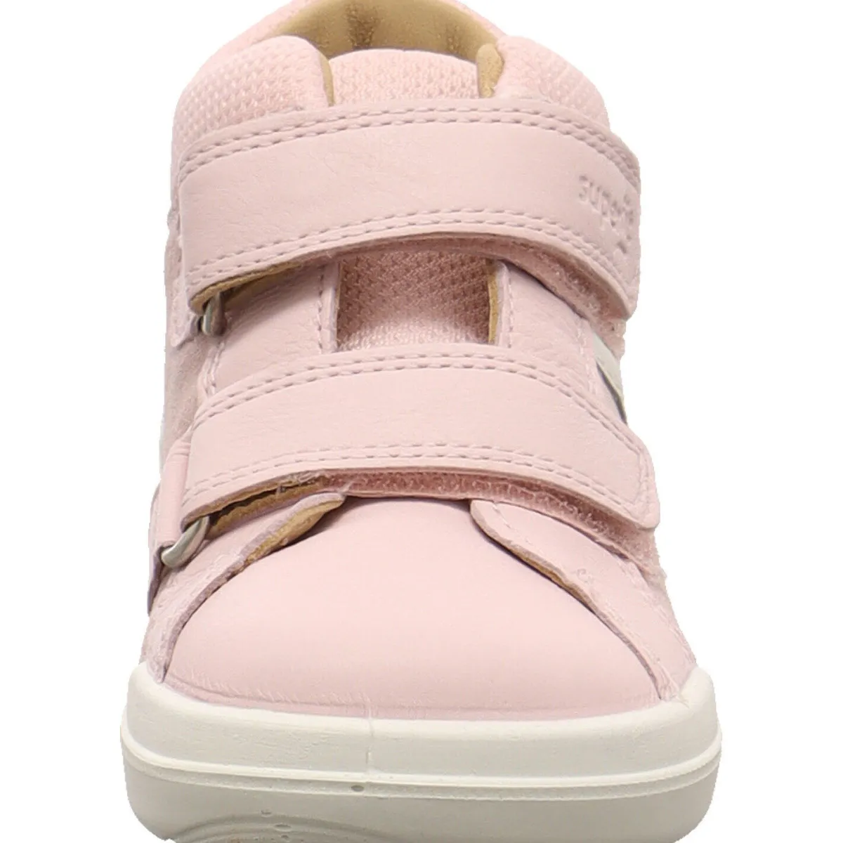 Das Obermaterial aus einem Mix aus hochwertigem Glattleder und weichem Veloursleder in Rosa ist sehr hochwertig verarbeitet. Details in Weiß und ein kleines Textilband in Blau runden das modische Design gekonnt ab.