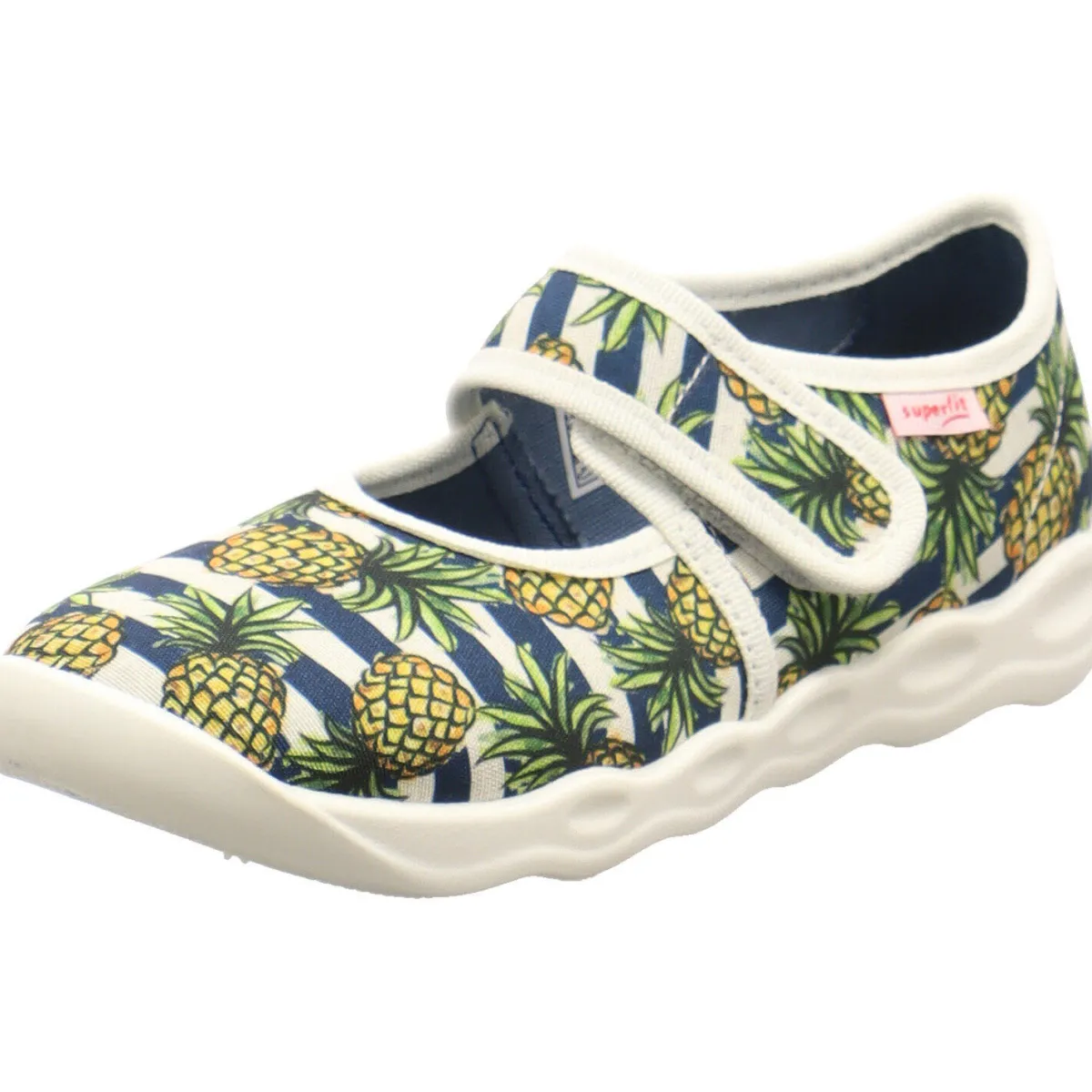 Gefertigt aus weichem Textil begeistert das Blau/Weiß gestreifte Obermaterial mit den aufgedruckten Ananassen, welche einen sommerlichen Look zaubern. Er bietet besten Komfort und begeistert jedes Mädchen.