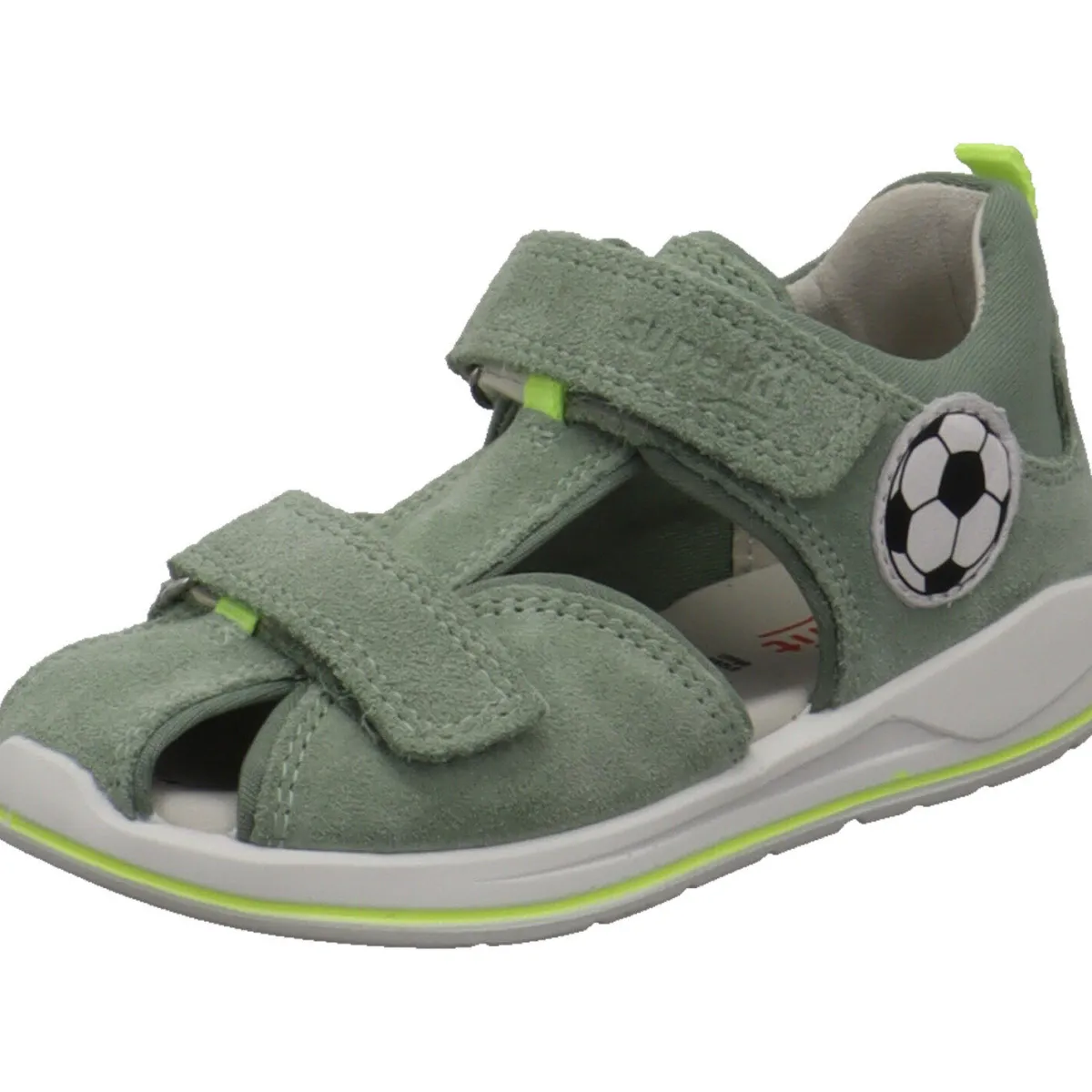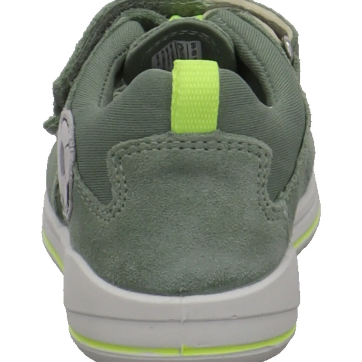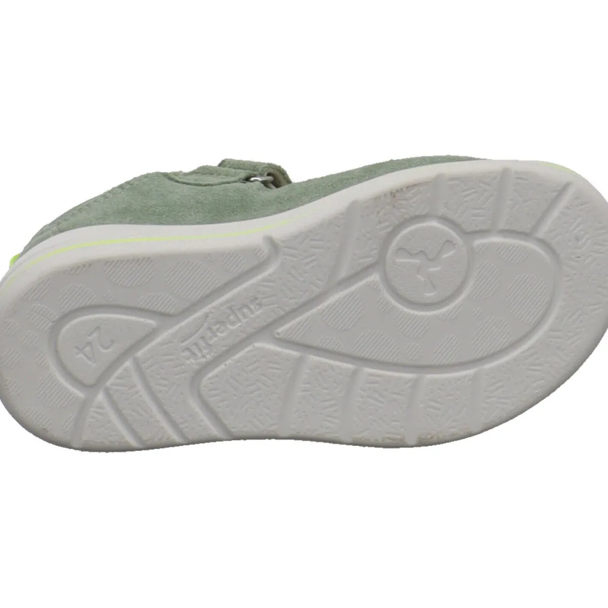 Sie wurde aus weichem Echtleder in Grün gefertigt. Die Einsätze aus Textil machen ihn besonders weich und angenehm zu tragen. Durch den doppelten Klettverschluss kann der Schuh optimal an den Fuß angeapsst werden. Als Hingucker ist an der Seite ein Fußball angebracht und ein Highlight für die Jungen. Akzente in Neon Gelb runden den Look perfekt ab. Die Laufsohle in Weiß ist angenehm leicht und flexibel. Durch den geschlossenen Zehenbereich schützt er die kleinen Füße optimal.
