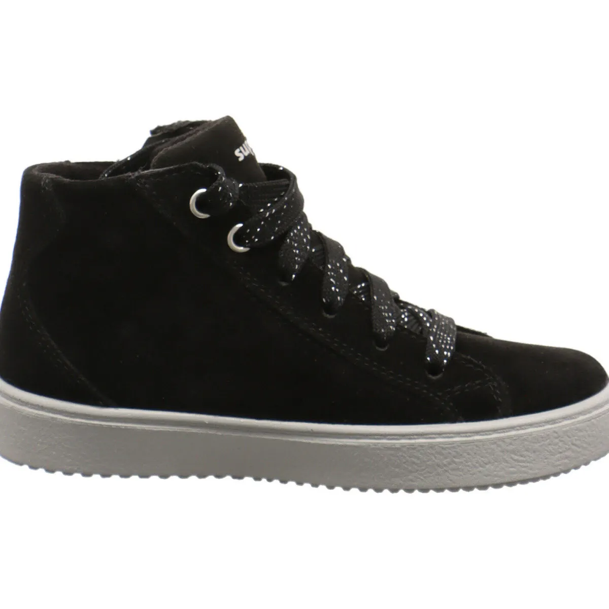 Das Obermaterial aus hochwertigem Veloursleder in Schwarz und die Schnittform verpassen dem Schuh seinen trendigen Look. Die Laufsohle in Grau und die Ziernähte in Silber, die an der Seite des Schuhs einen Stern bilden sind ein weiterer Blickfang.
