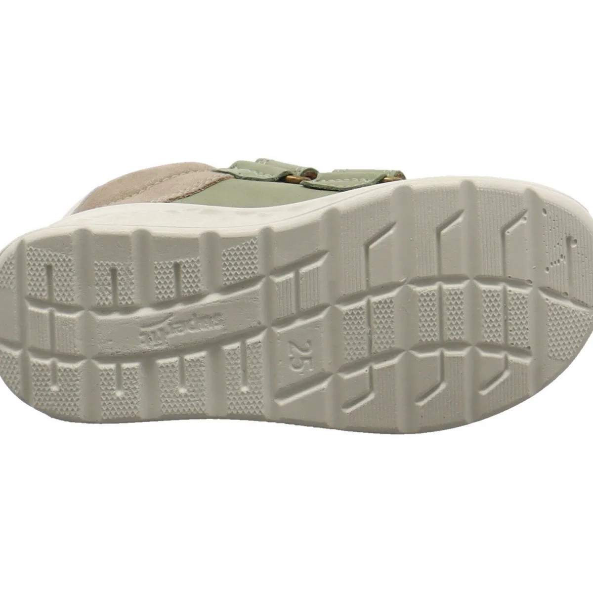 Er wurde aus hochwertigem Echtleder in Grün gefertigt und mit einem Einsatz in Braun versehen. Das Design gefällt sicher Mädchen und Jungen. Durch den doppelten Klettverschluss, ist der Einstieg ganz leicht. Die Echtleder Innensohle ist als Wechselfußbett gearbeitet und mit einer Fitting Line versehen, so kannst du die richtige Größe für dein Kind ermitteln.