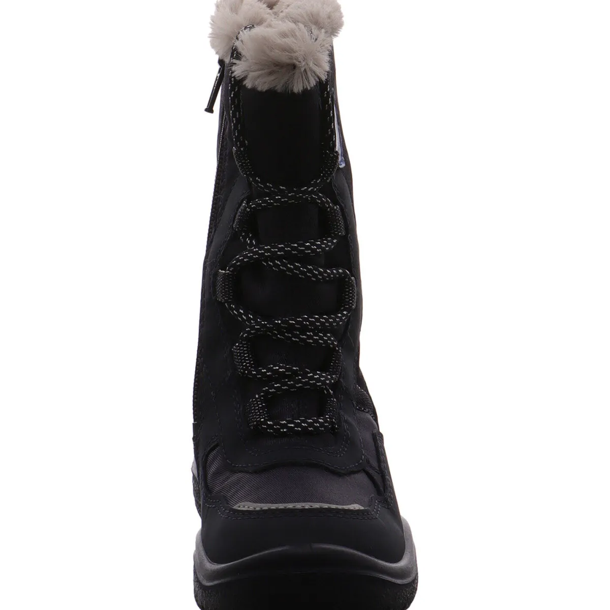 Durch die Schnürung kann der Schaft individuell angepasst werden und das kleine Herz in Blau ist ein süßer Eyecatcher. Mit dem seitlichen Reißverschluss ist der Ein- und Ausstieg besonders einfach.
