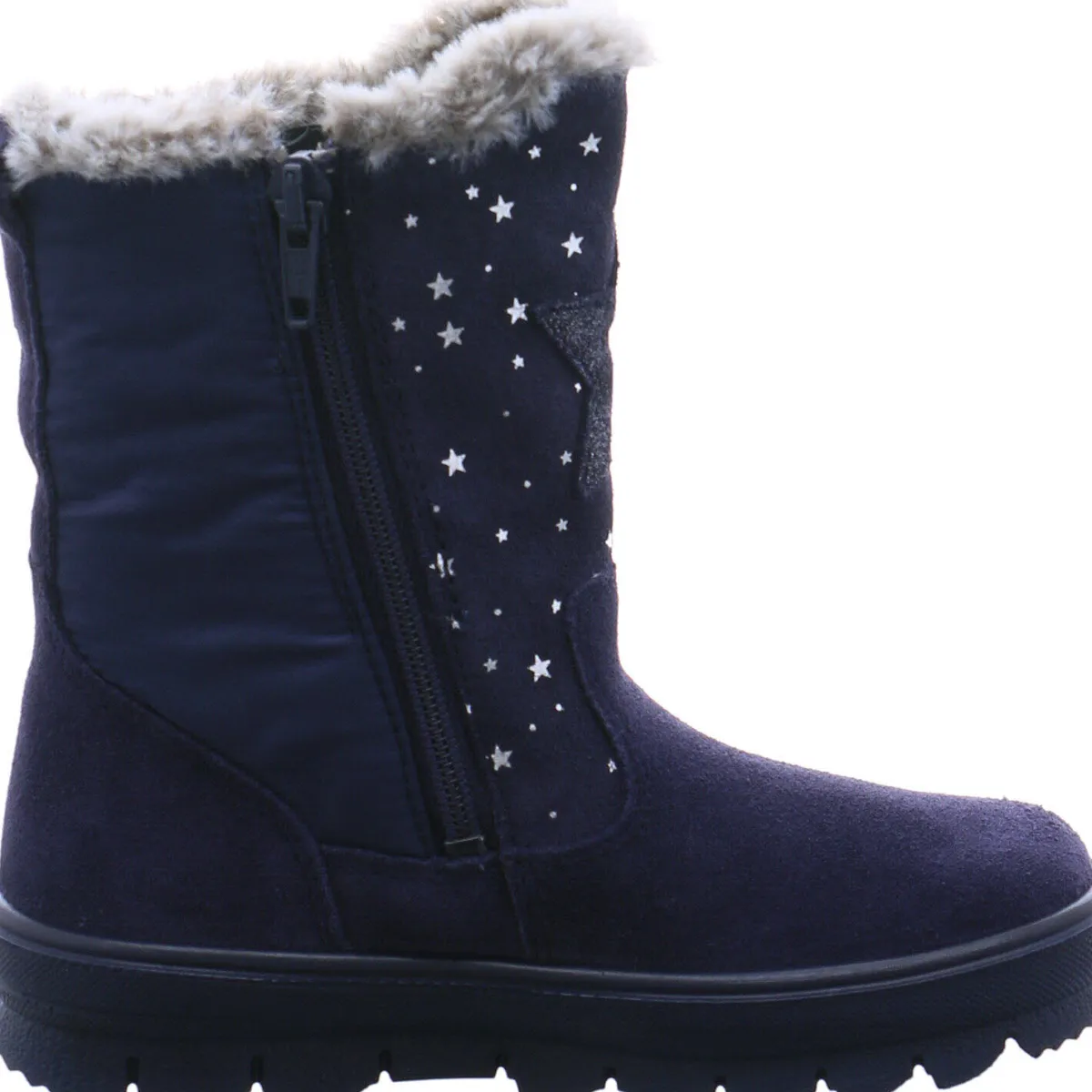 Das weiche Obermaterial in einem Mix aus Veloursleder und Textil in Grau ist am Schaft mit einem schicken Sternchenmuster versehen.