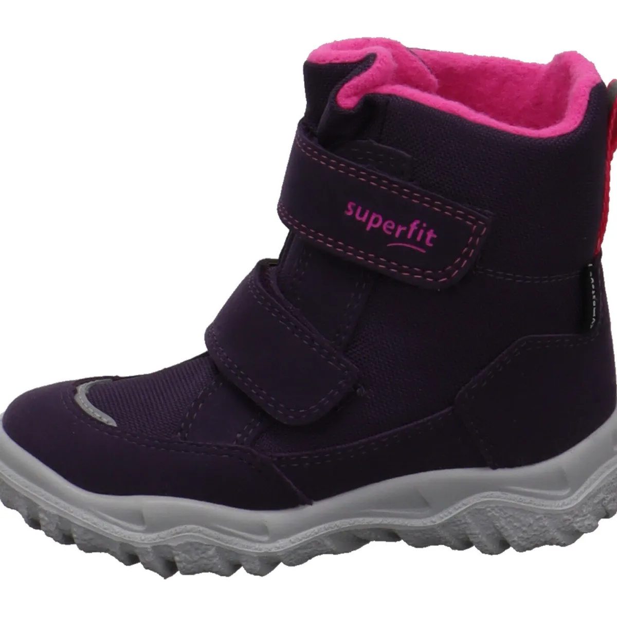 Der Winterstiefel für Kinder ist ein Allrounder im Alltag und beim Schlittenfahren. Das Obermaterial wurde aus Textil in Lila gefertigt.