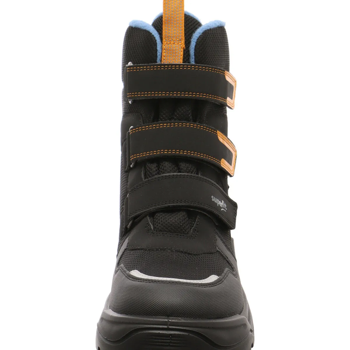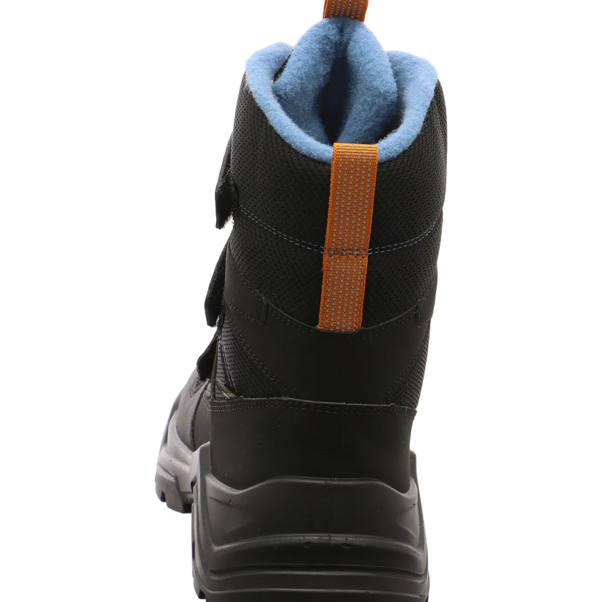 Besondere Hingucker sind dabei die Akzente in Orange in Blau. Durch die gegenüberliegenden Laschen am Schaft und dem dreifachen Klettverschluss ist der Einstieg ganz einfach.
