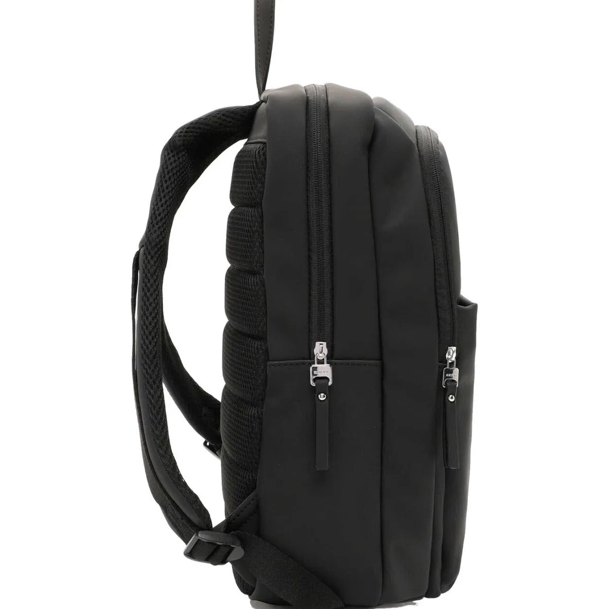 Das Obermaterial besteht aus hochwertig verarbeitetem Kunstleder in Schwarz und ist durch seine Haptik besonders anschmiegsam. Die glatte Optik und das Uni-Design sind fein gearbeitet und verleihen dem Rucksack einen edlen Look.