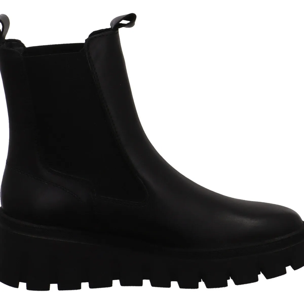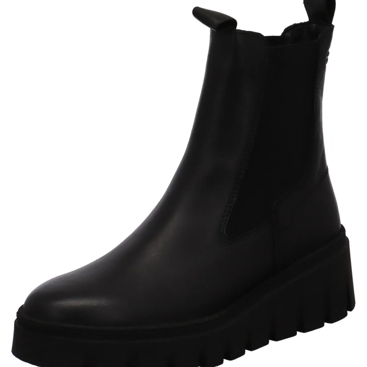 Er wurde aus hochwertigem Echleder in Schwarz gefertigt. Die Laschen am Schaft und gegenüberliegenden Gummipanels, helfen bei einem leichten Einstieg und geben ihm seinen modernen Look.