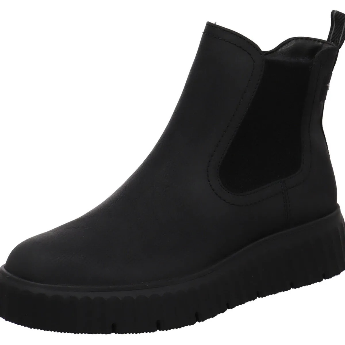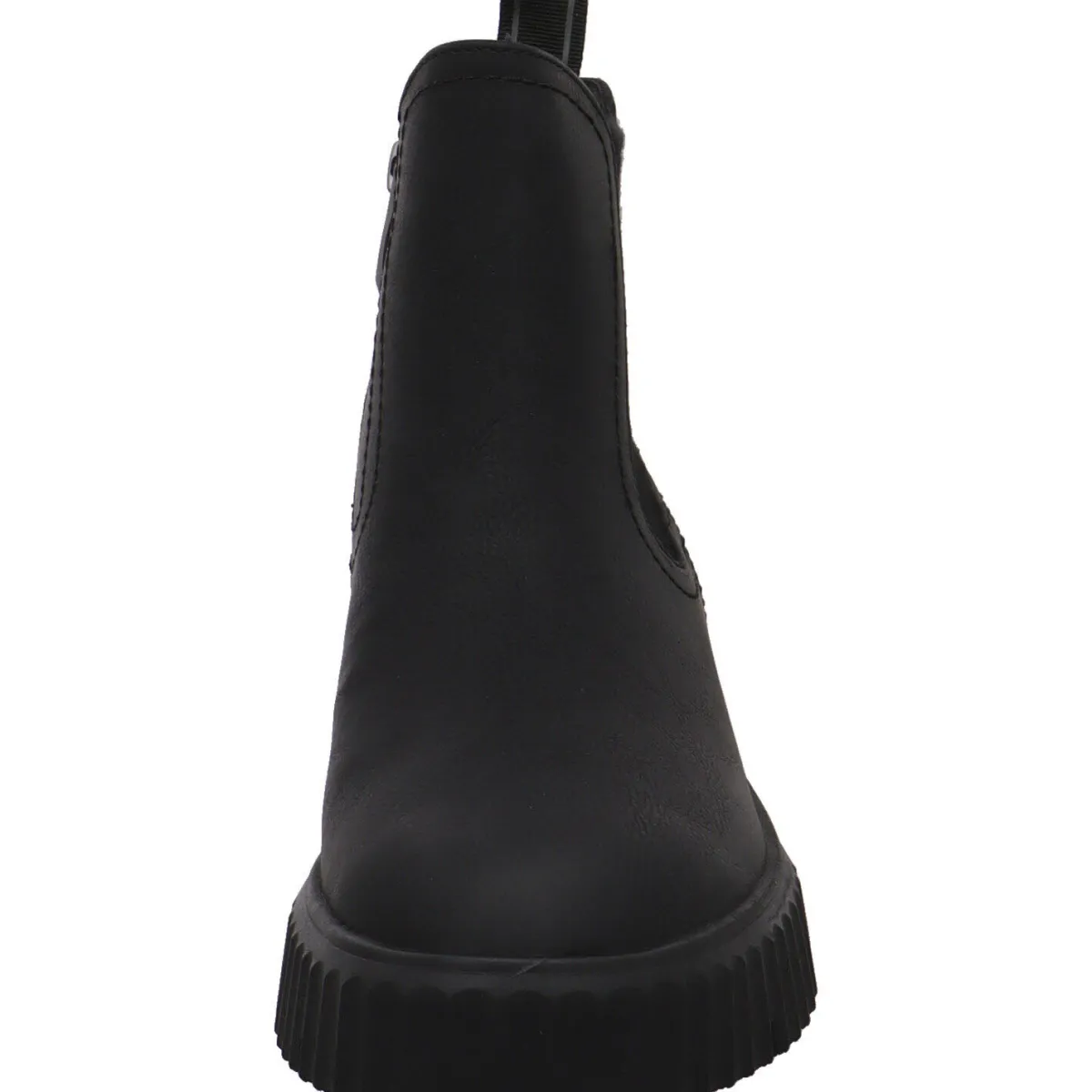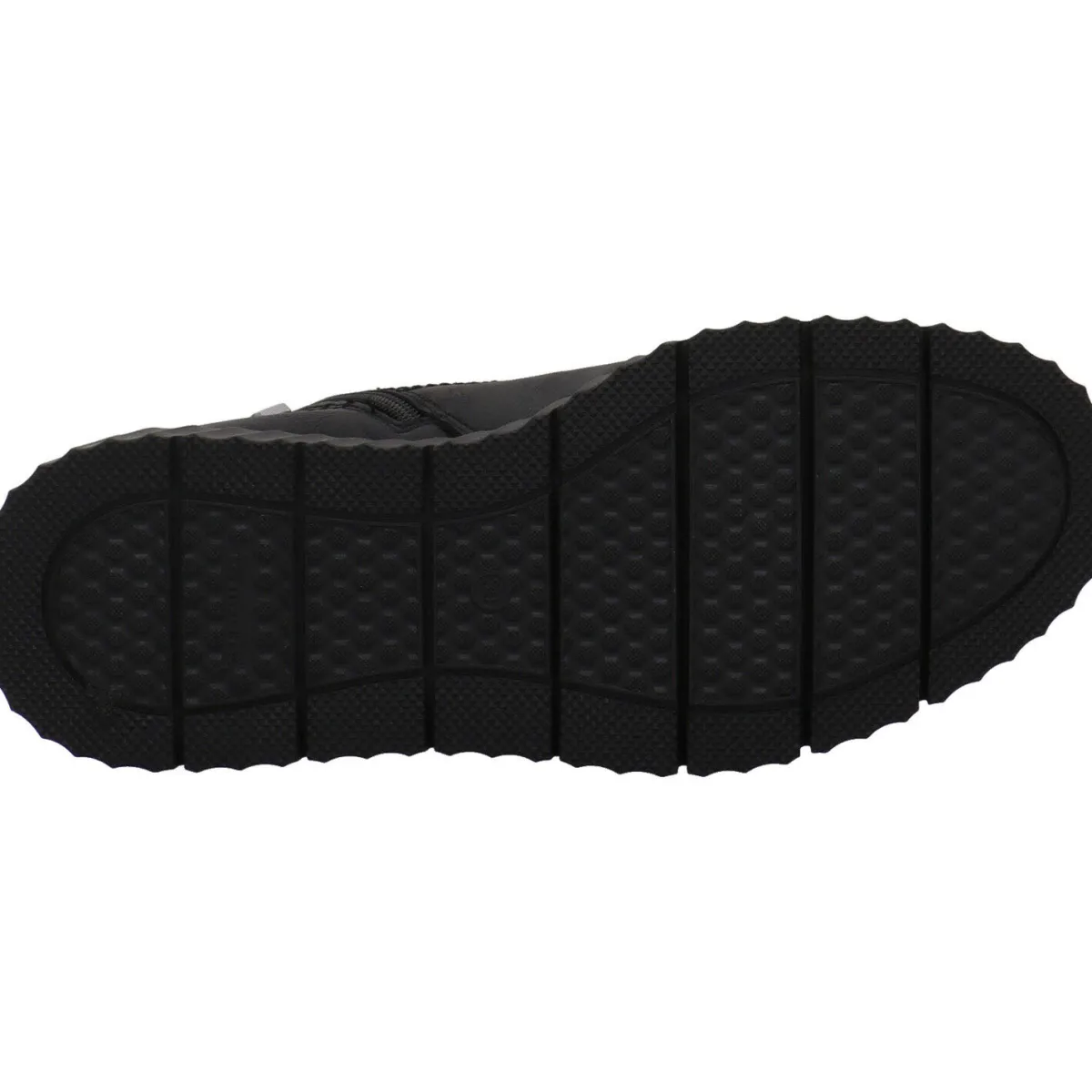 Er wurde aus einem Mix aus Kunstleder und Textil in Schwarz gefertigt. Mit dem seitlichen Reißverschluss und der Lasche am Schaft ist der Einstieg ganz leicht.