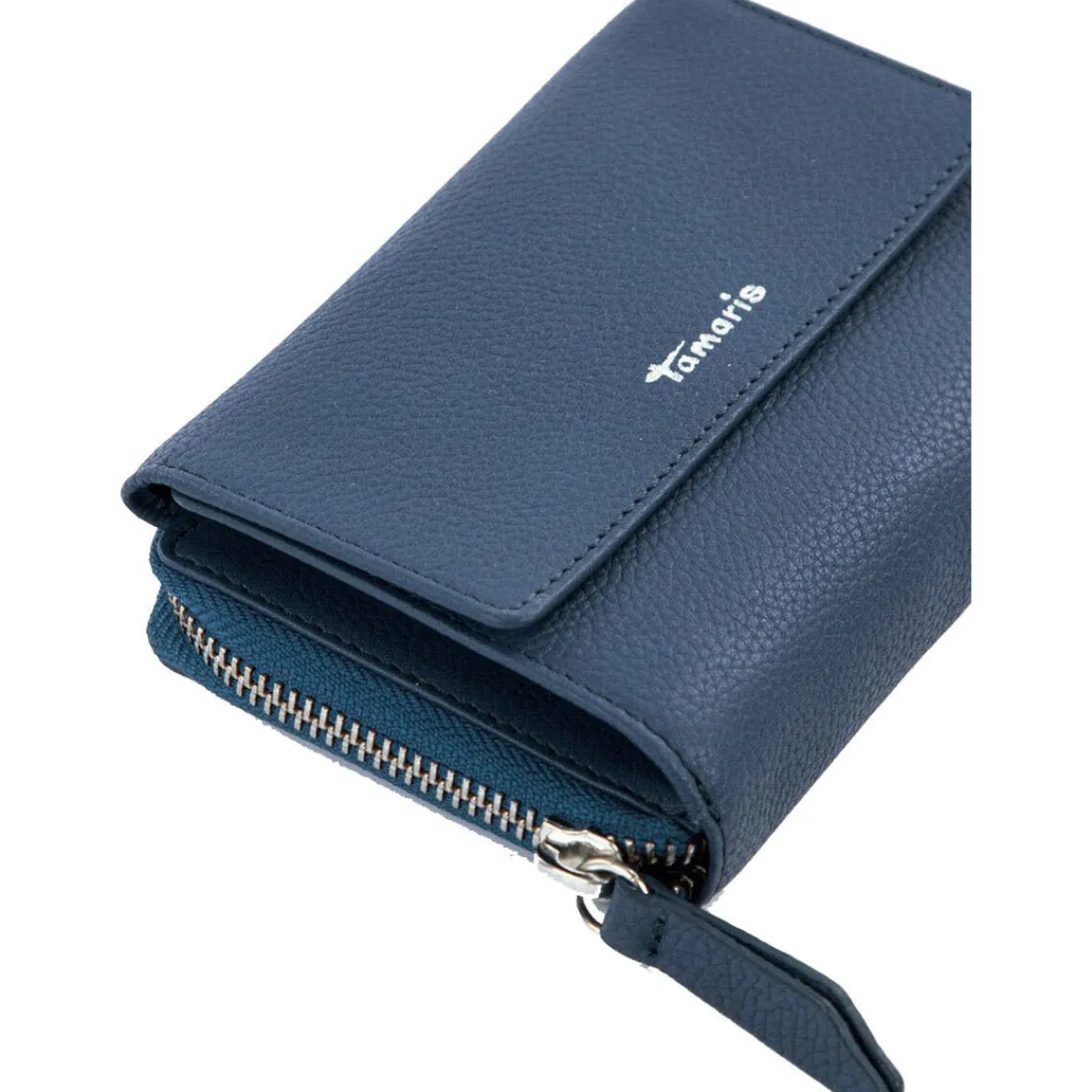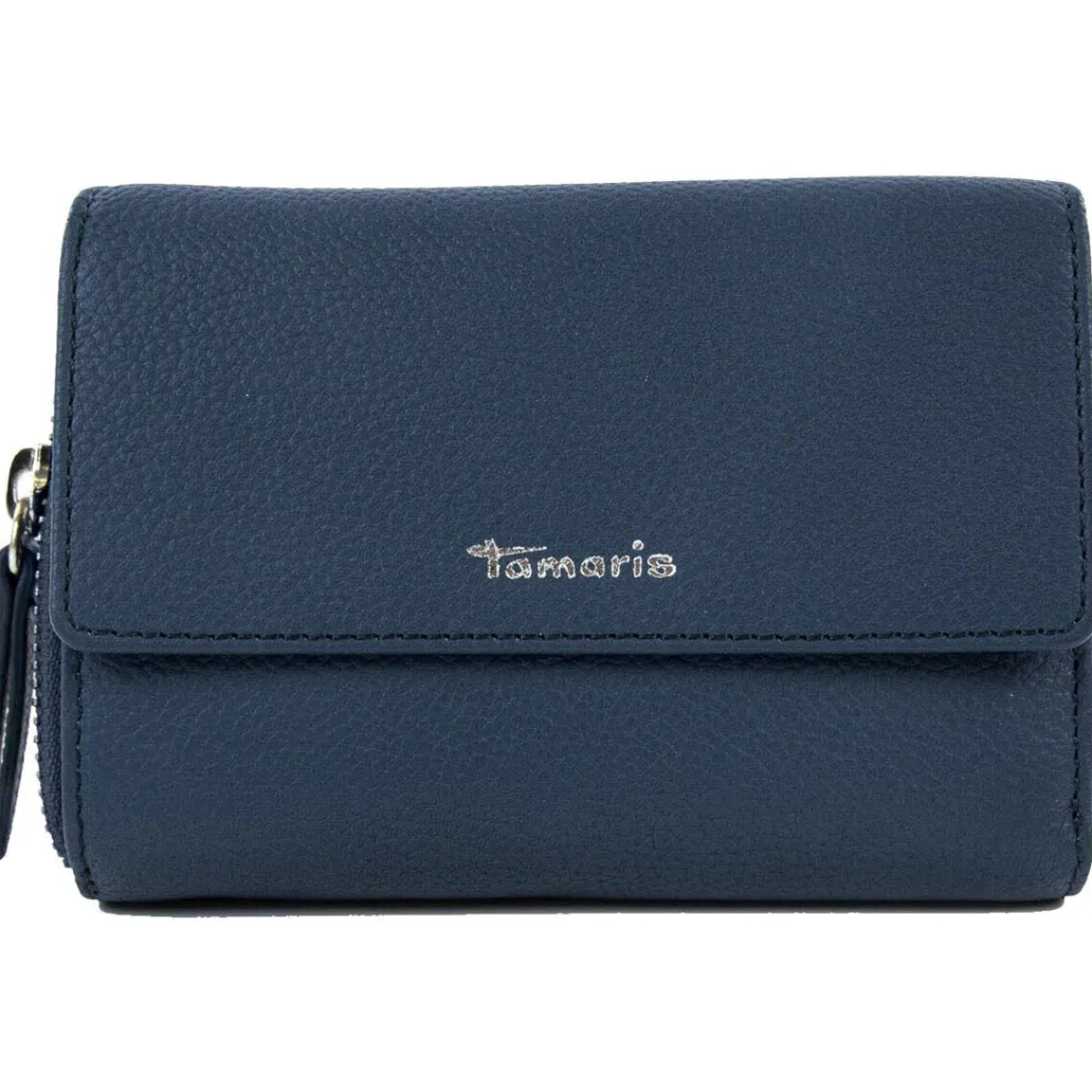 Gefertigt aus authentisch genarbtem Echtleder in Blau ist sie mit dem Tamaris Logo versehen.