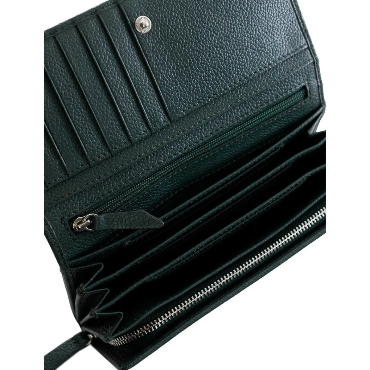 Das Portemonnaie wurde aus Echtleder gefertigt und lässt sich durch einen Druckknopf öffnen und schließen. Das Innenleben besteht aus großen Fächern für Geldscheine und zahlreichen kleinen Fächern für Karten und Ähnliches. Für Kleingeld verfügt die Langbörse über ein separates Fach mit Reißverschluss. Auf der Rückseite ist ein Steckfach zu finden.