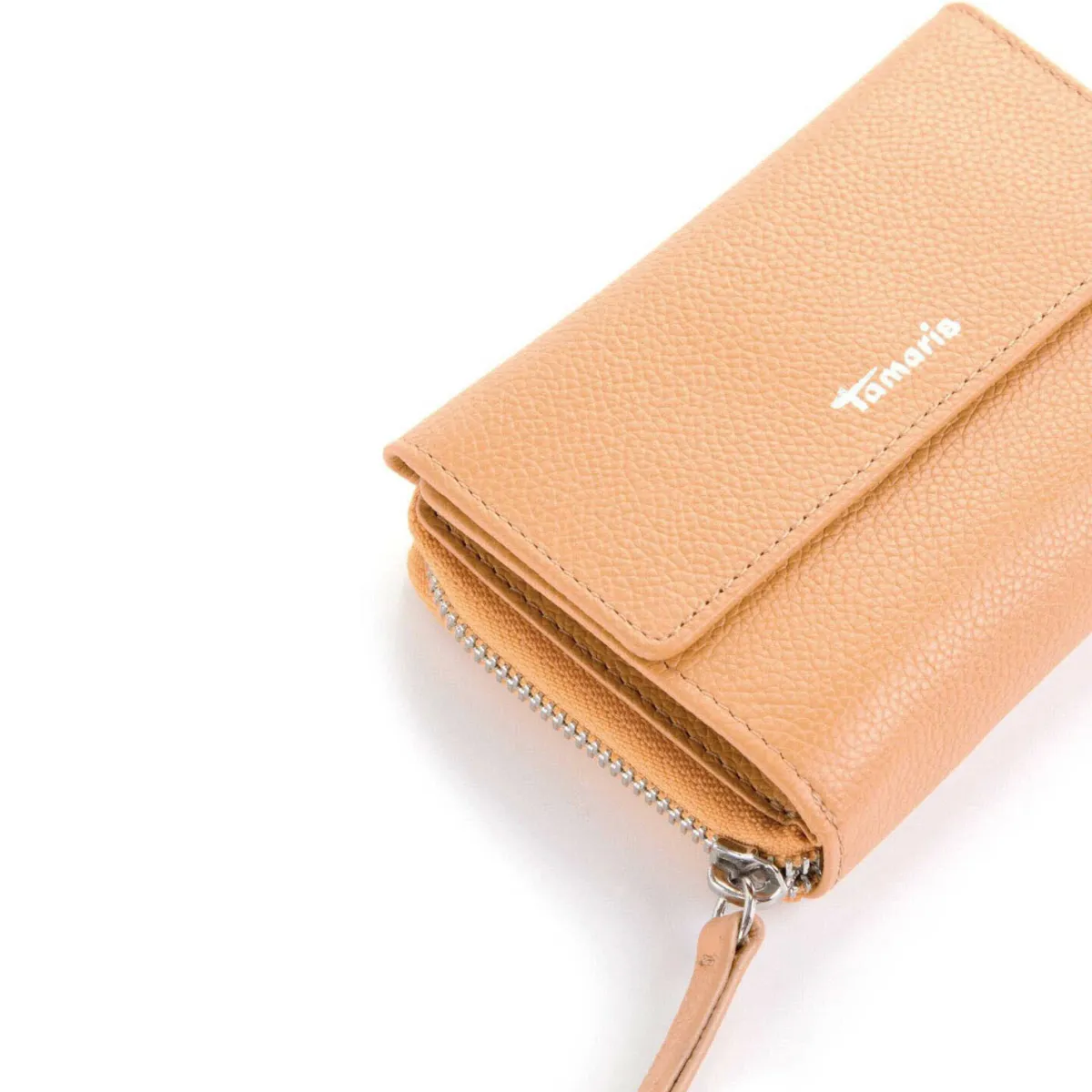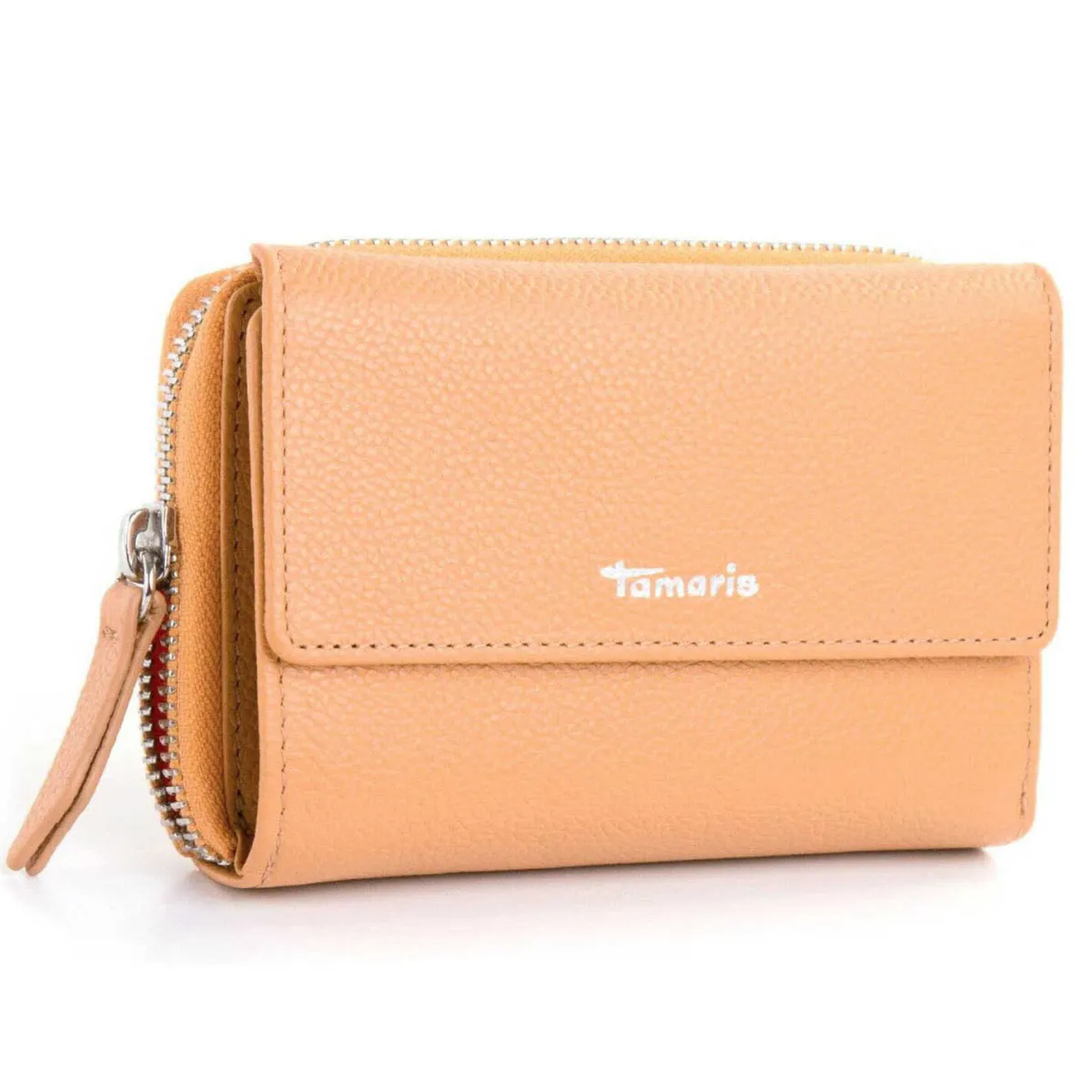 Gefertigt aus authentisch genarbtem Echtleder in Apricot Rosa ist sie mit dem Tamaris Logo versehen.