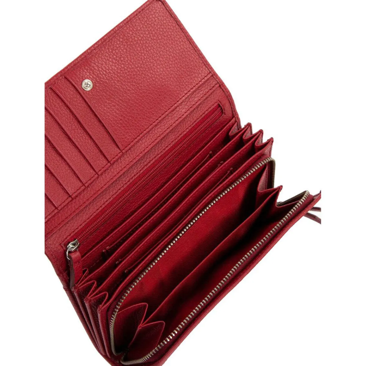 Das Portemonnaie wurde aus Echtleder gefertigt und lässt sich durch einen Druckknopf öffnen und schließen. Das Innenleben besteht aus großen Fächern für Geldscheine und zahlreichen kleinen Fächern für Karten und Ähnliches. Für Kleingeld verfügt die Langbörse über ein separates Fach mit Reißverschluss. Auf der Rückseite ist ein Steckfach zu finden.
