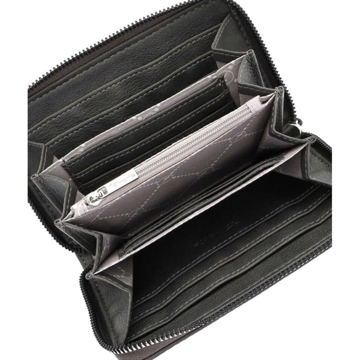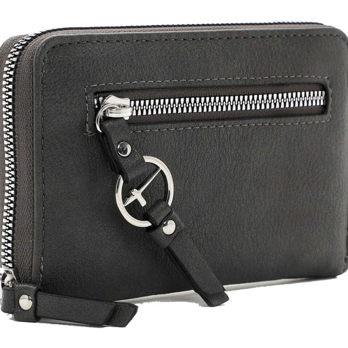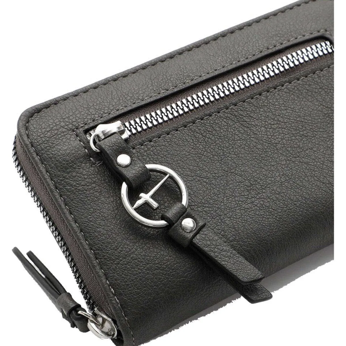 Das Portemonnaie lässt sich durch einen umlaufenden Reißverschluss öffnen und schließen. Das Innenleben besteht aus großen Fächern für Geldscheine und zahlreichen kleinen Fächern für Karten und Ähnliches. Für Kleingeld verfügt die Geldbörse über ein separates Innenfach mit Reißverschluss. An der Vorderseite befindet sich ein weiteres kleines Fach, was ebenfalls mit einem Reißverschluss geschlossen werden kann. Daran befindet sich ein toller Tamaris Anhänger.