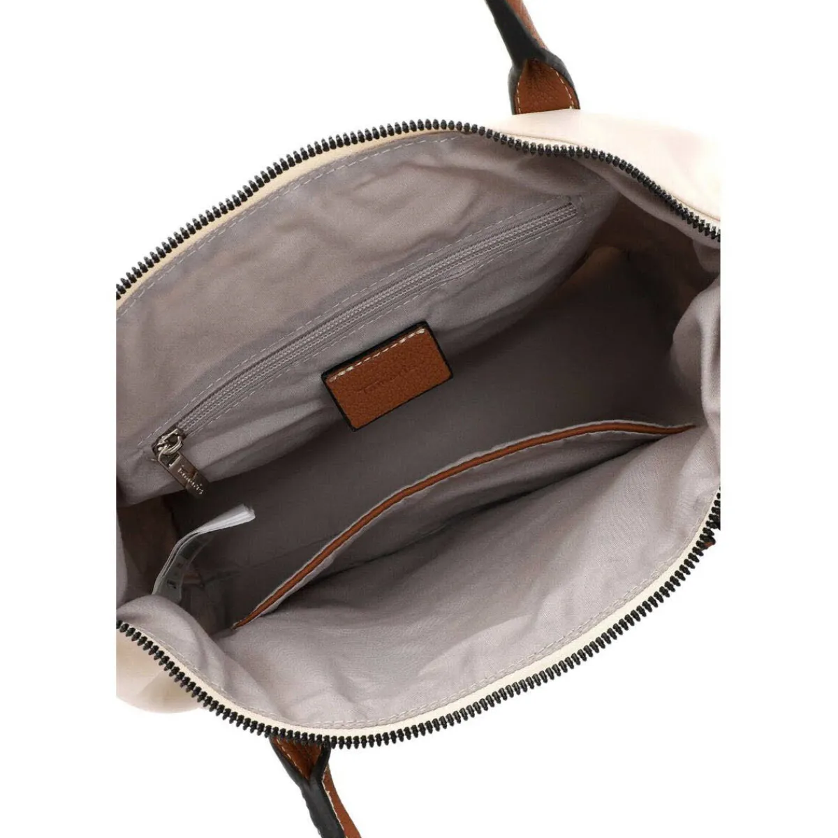 Ein Reißverschlussfach und ein Steckfach innen