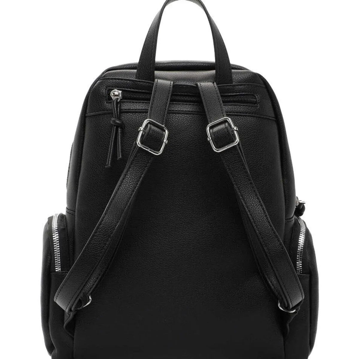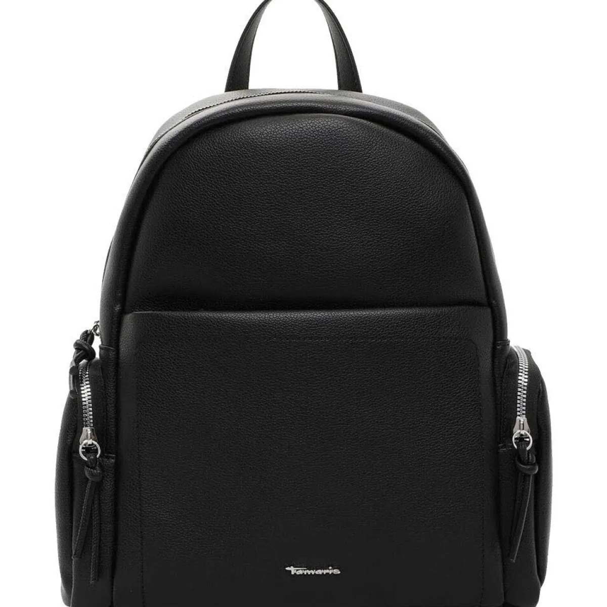 Das grob genarbte Obermaterial in Schwarz verleiht dem Rucksack einen klassischen und zeitlosen Look.