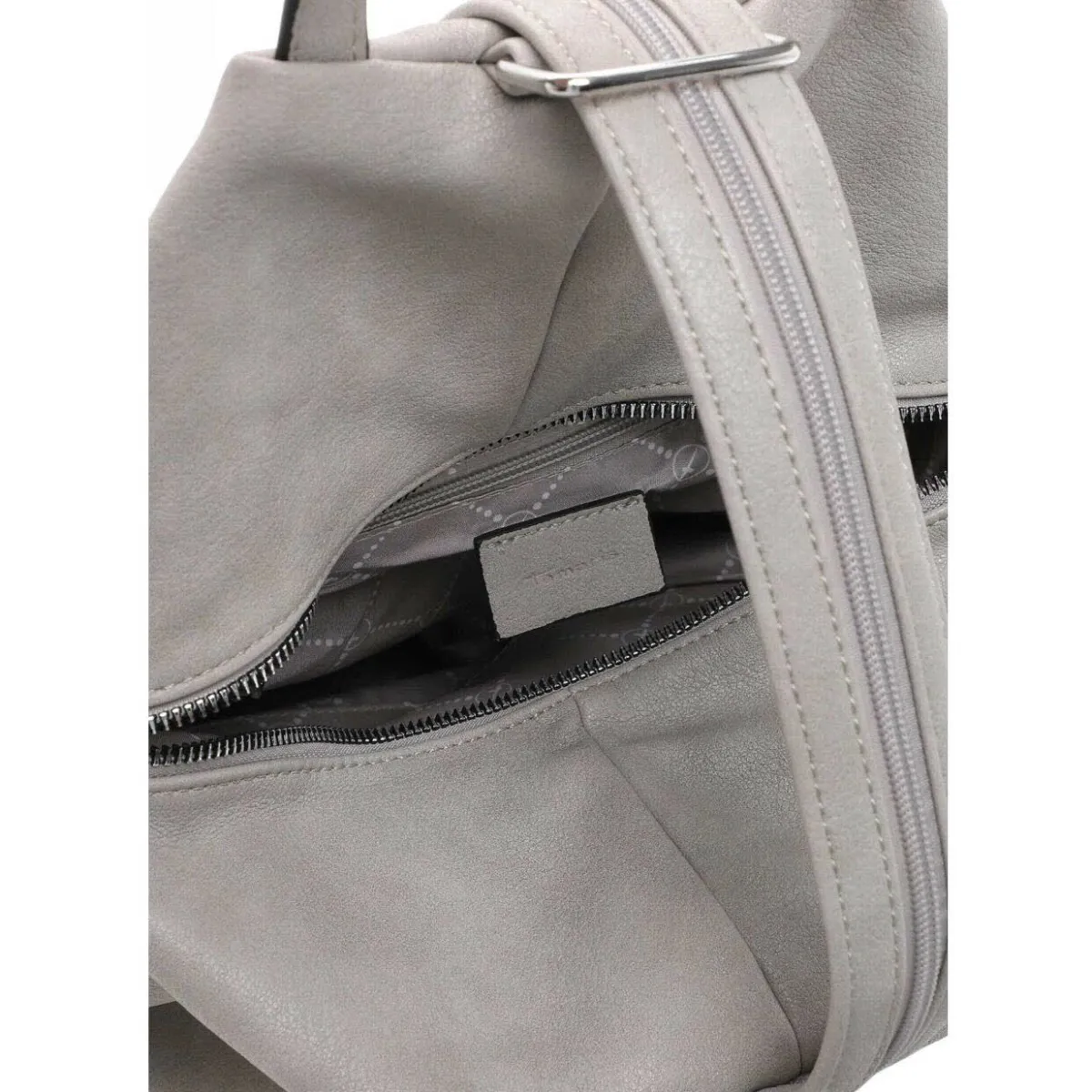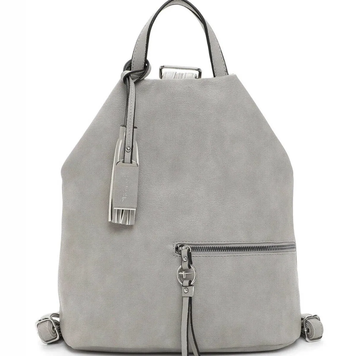 Das geschickt gestaltete Obermaterial in Grau zieht garantiert die Blicke auf sich und der abnehmbare Anhänger macht den Rucksack zu etwas ganz Besonderem. Highlight sind die durch einen Reißverschluss verbundenen Schultergurte, die ebenfalls als Tragehenkel benutzt werden können.