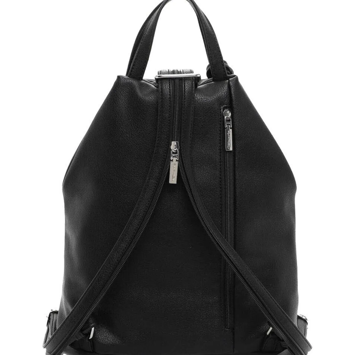 Das geschickt gestaltete Obermaterial in Schwarz zieht garantiert die Blicke auf sich und der abnehmbare Anhänger macht den Rucksack zu etwas ganz Besonderem. Highlight sind die durch einen Reißverschluss verbundenen Schultergurte, die ebenfalls als Tragehenkel benutzt werden können.