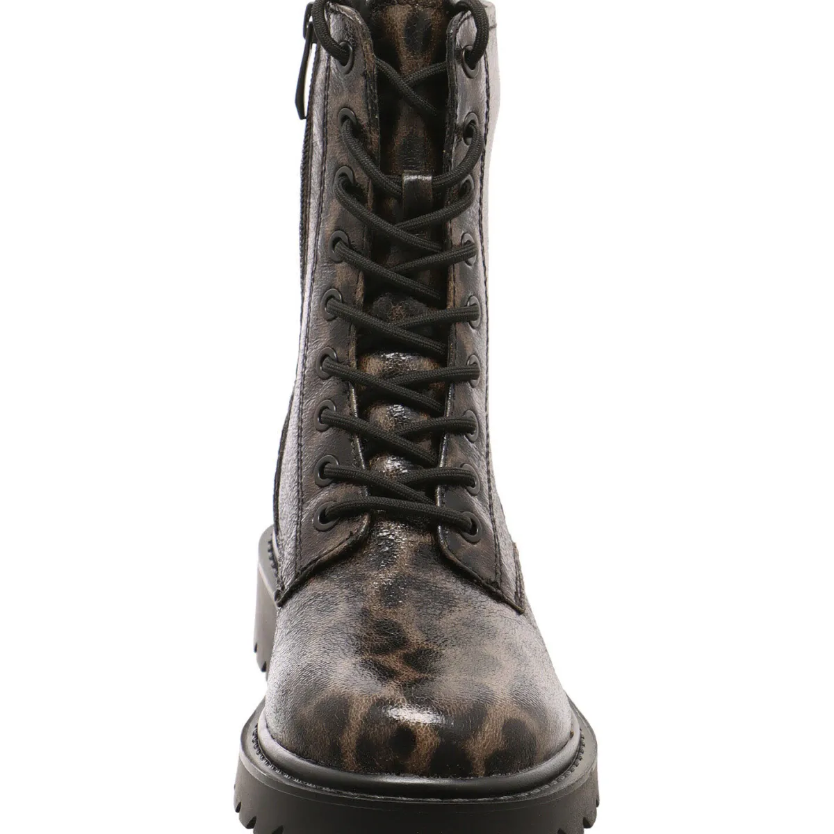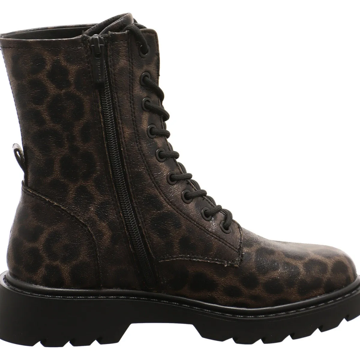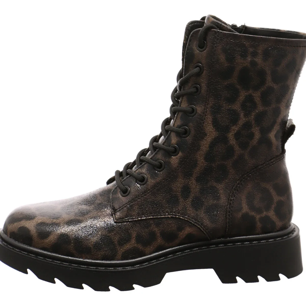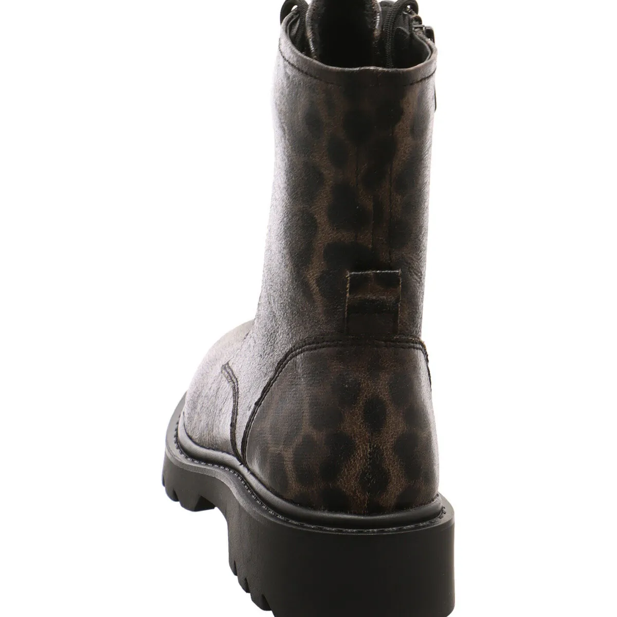 Durch den seitlichen Reißverschluss, ist der Einstieg ganz einfach und mit der Schnürung kann der Schuh optimal an den Fuß angepasst werden. Der Schaft ist höher gearbeitet und schmal. So kannst du den Schuh auch super zu einem angesagt Rock kombinieren.