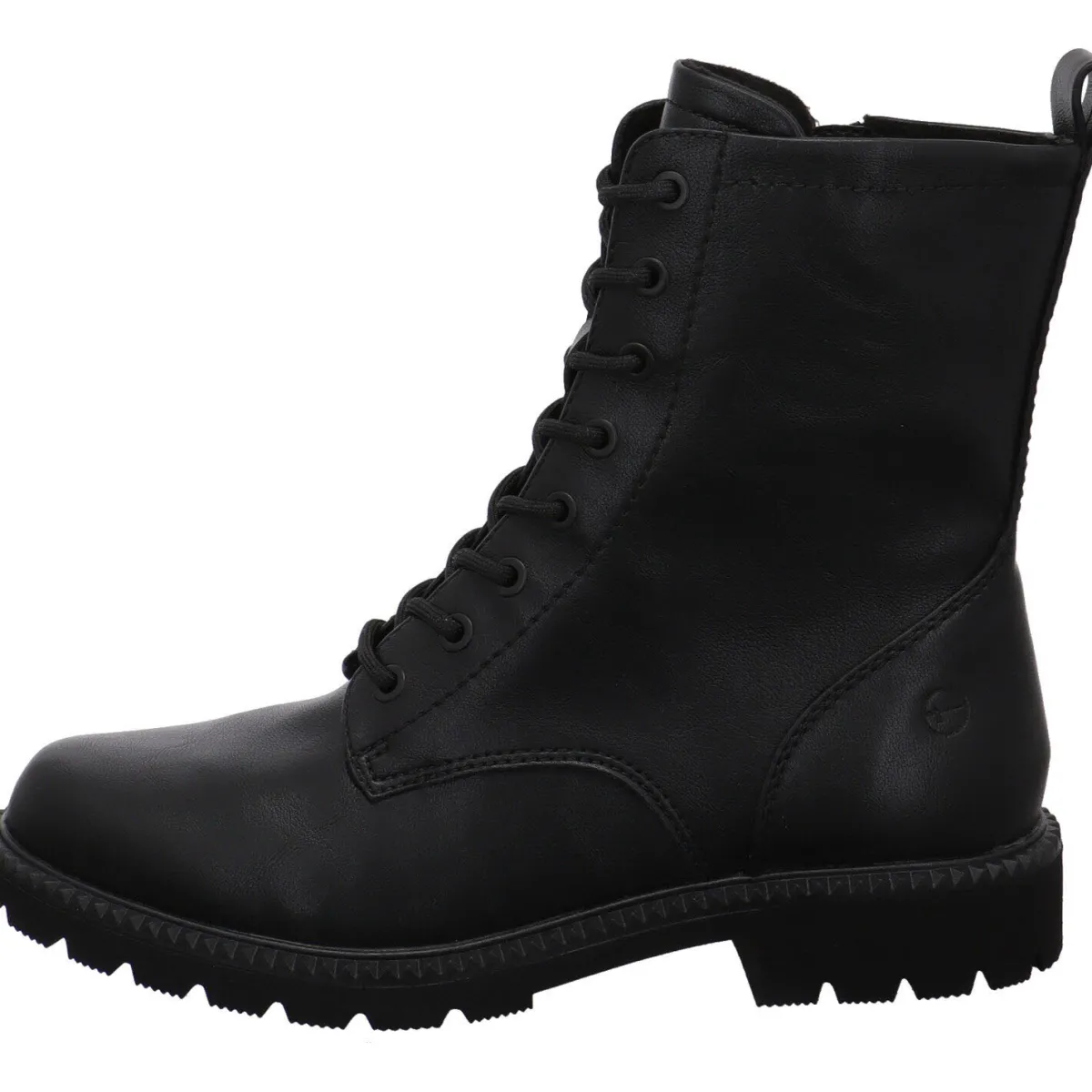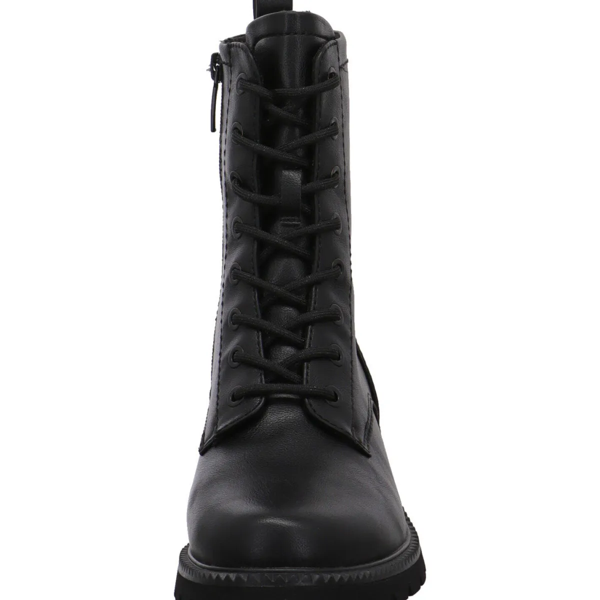 Sie wurde aus Kunstleder in Schwarz gearbeitet. Dank der Lasche am Schaft und dem seitlichen Reißverschluss ist der Einstieg ganz einfach. Mit der Schnürung kannst du sie genau auf deine Bedürfnisse anpassen. Das Innenfutter ist leicht angeraut und die Innensohle angenehm weich. Ideal also für kühlere Herbst Tage.
