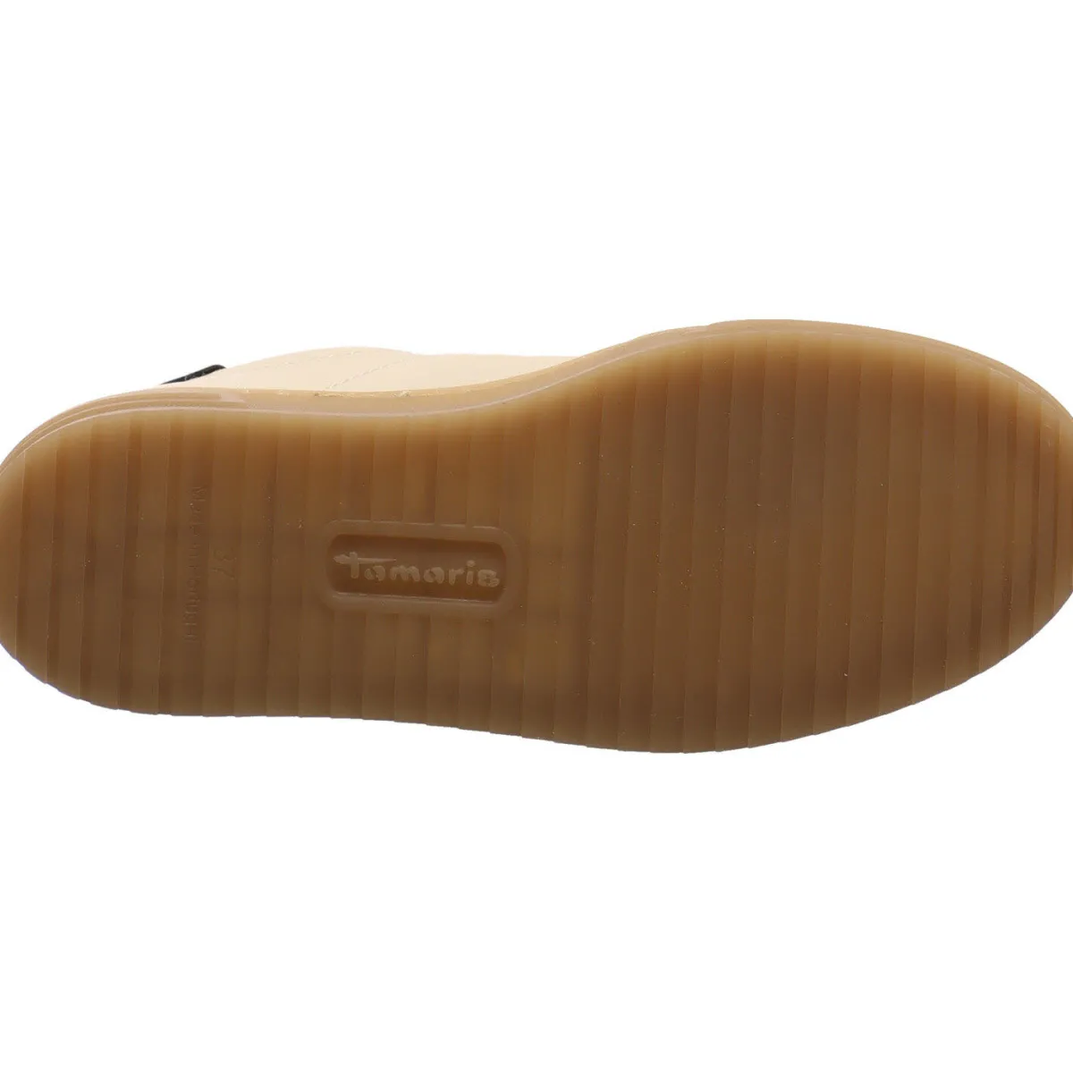 Gefertigt aus Echtleder, besticht das Obermaterial mit seiner tollen Farbkombination, mit hellem und dunklem Beige und Akzenten in Schwarz.