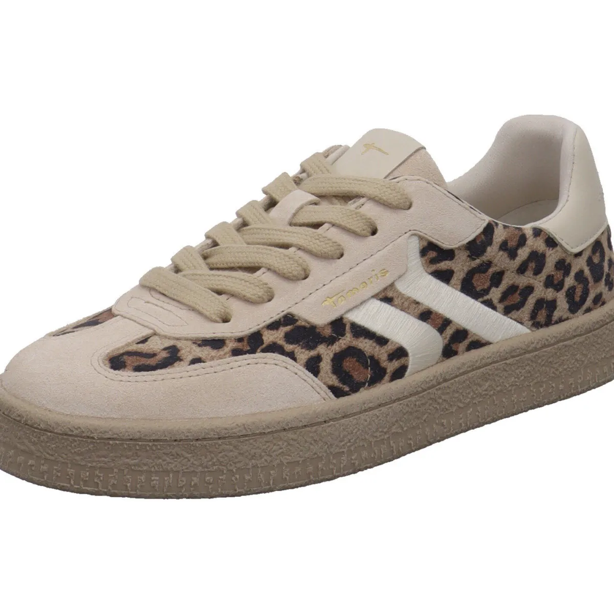 Er wurde aus hochwertigem Nubukleder in Braun gefertigt und ist an den Seiten mit dem angesagten Leo Animal Print versehen.