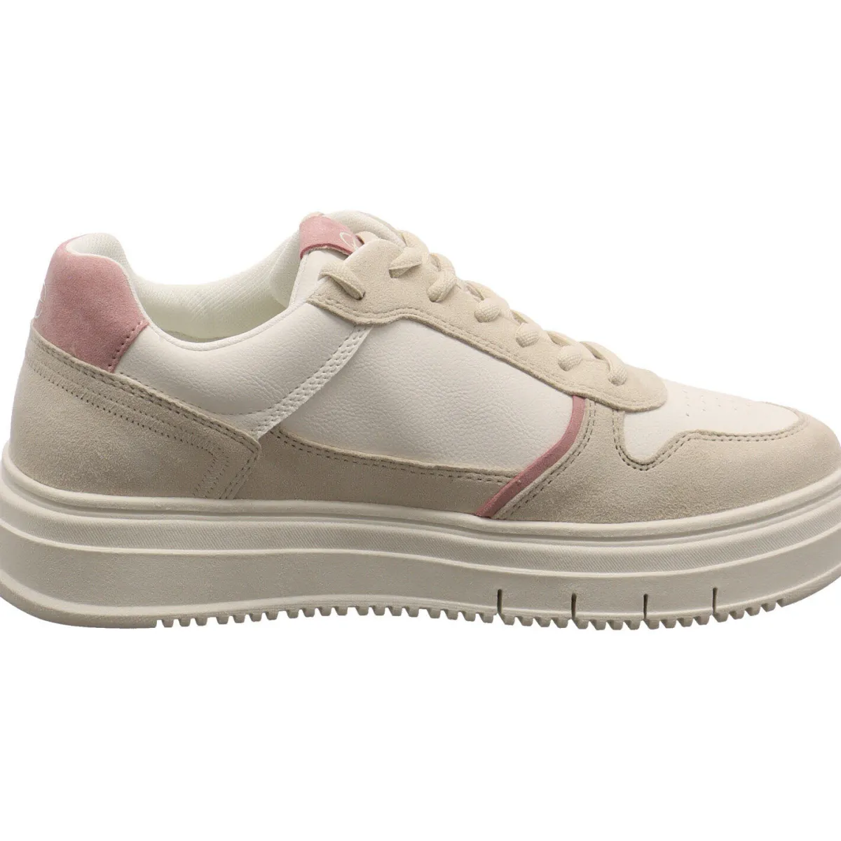 Das Obermaterial wurde aus einem gekonnten Mix aus Echtleder und Synthetik in Weiß gefertigt und ist mit einer schönen Overlay Optik und Akzenten in Beige und Rosa versehen.