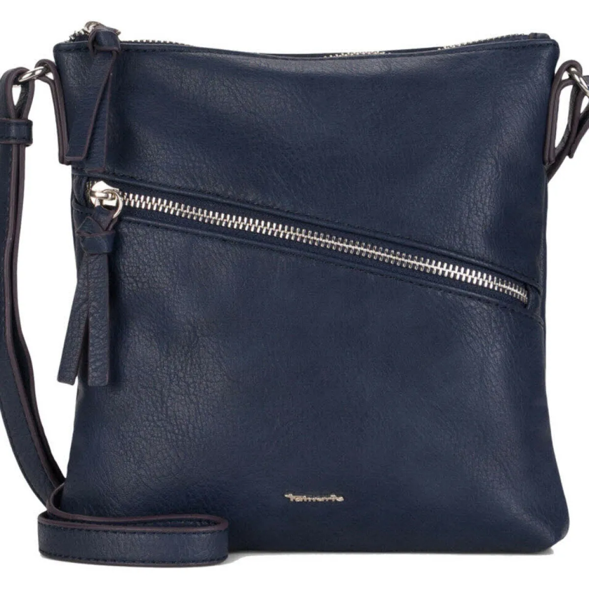 Gefertigt aus authentisch genarbtem Kunstleder in Blau macht die Handtasche zu jedem Outfit eine ausgesprochen gute Figur.