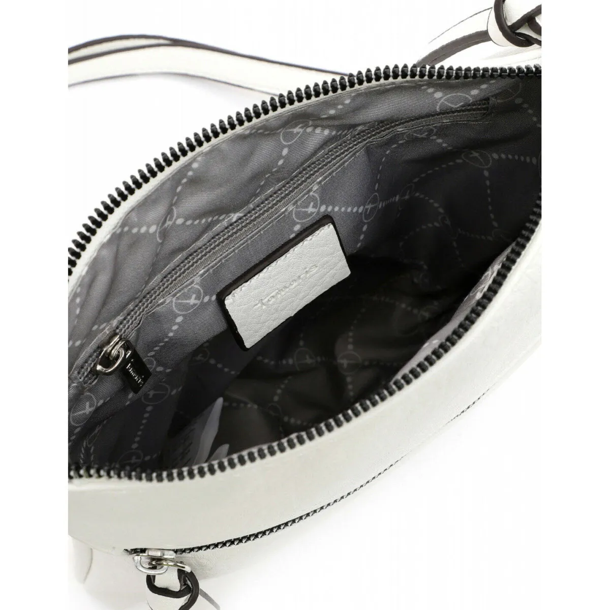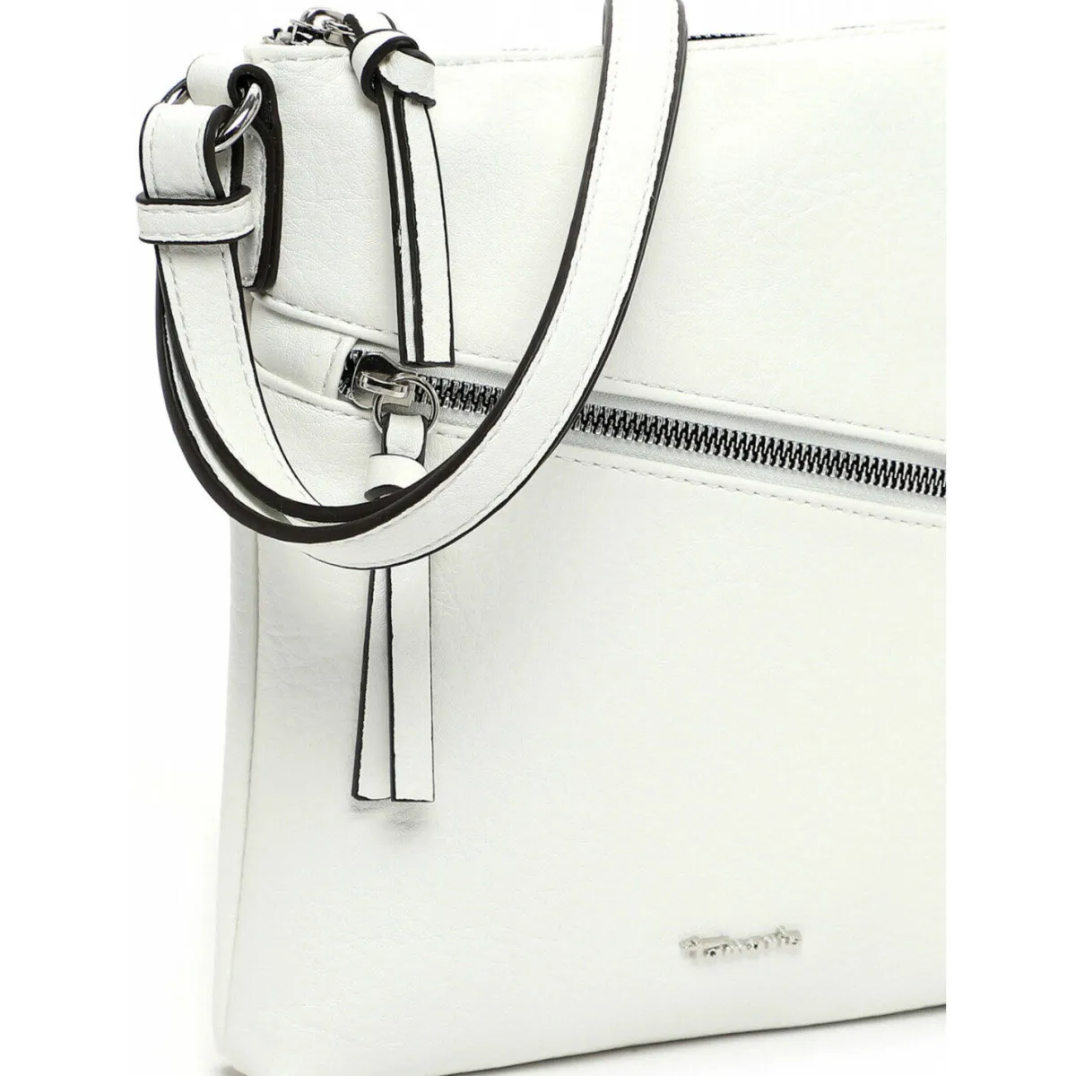 Gefertigt aus authentisch genarbtem Kunstleder in Weiß macht die Handtasche zu jedem Outfit eine ausgesprochen gute Figur.