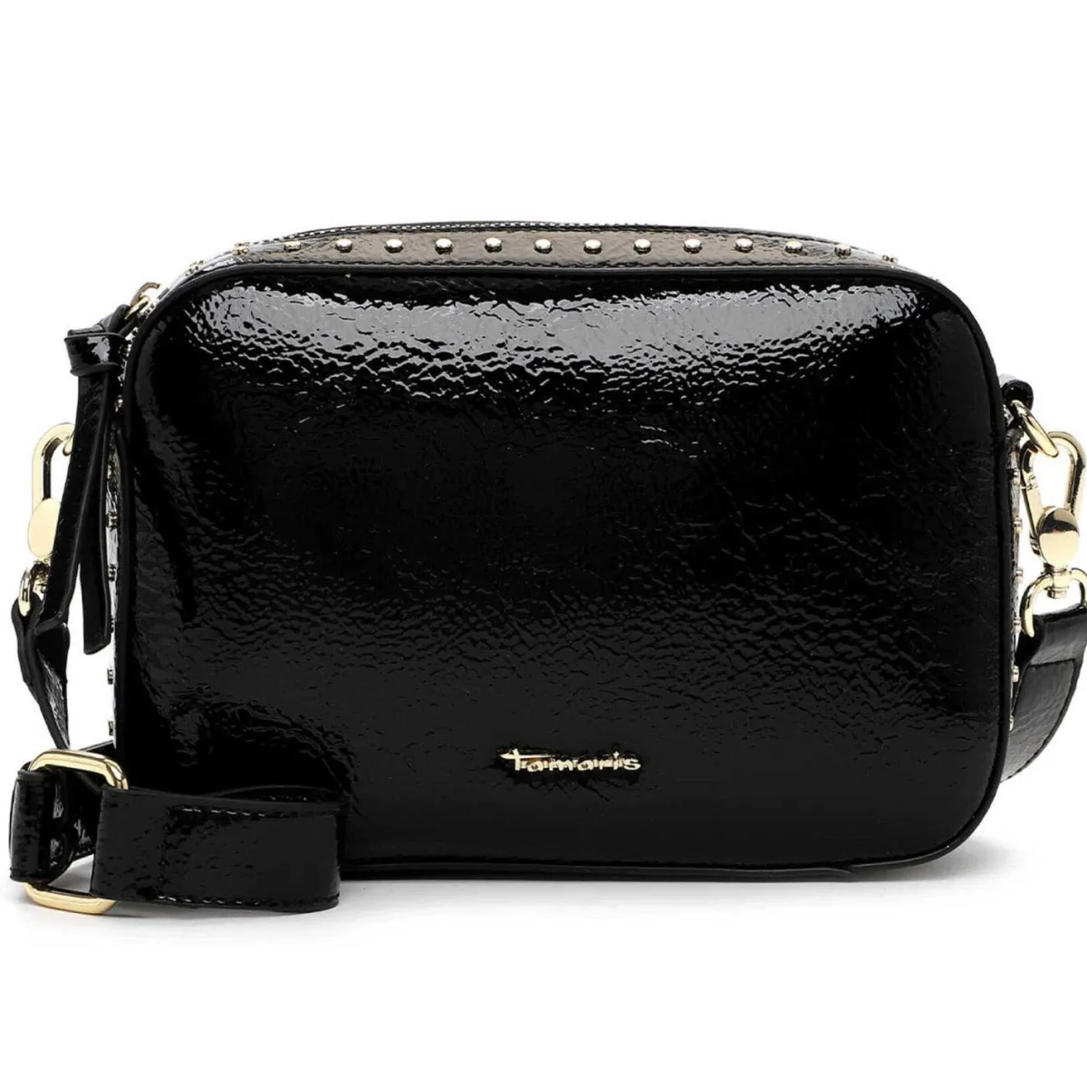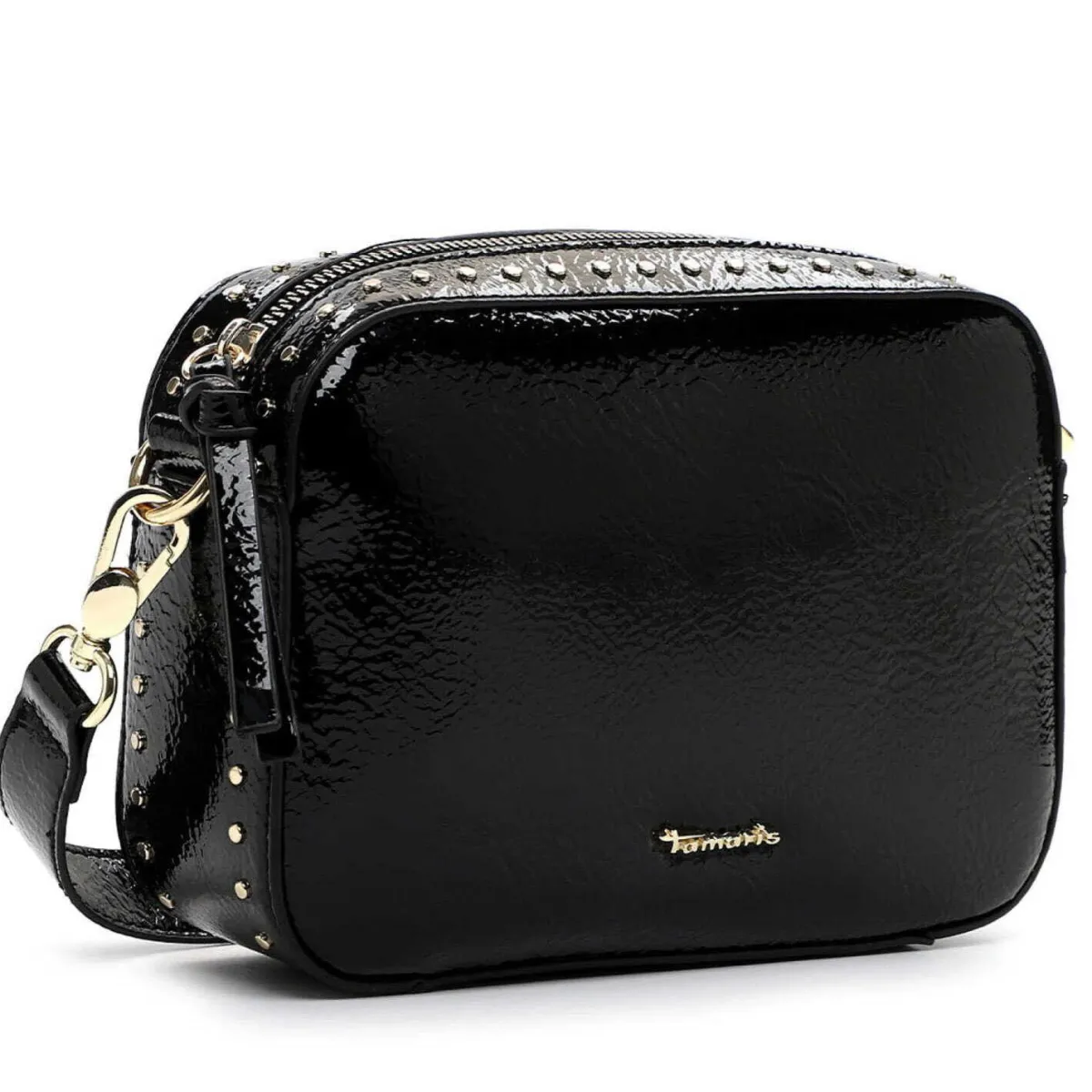 Eyecatcher sind das Obermaterial mit einem glänzenden Lack-Finish und die Nieten in Gold.