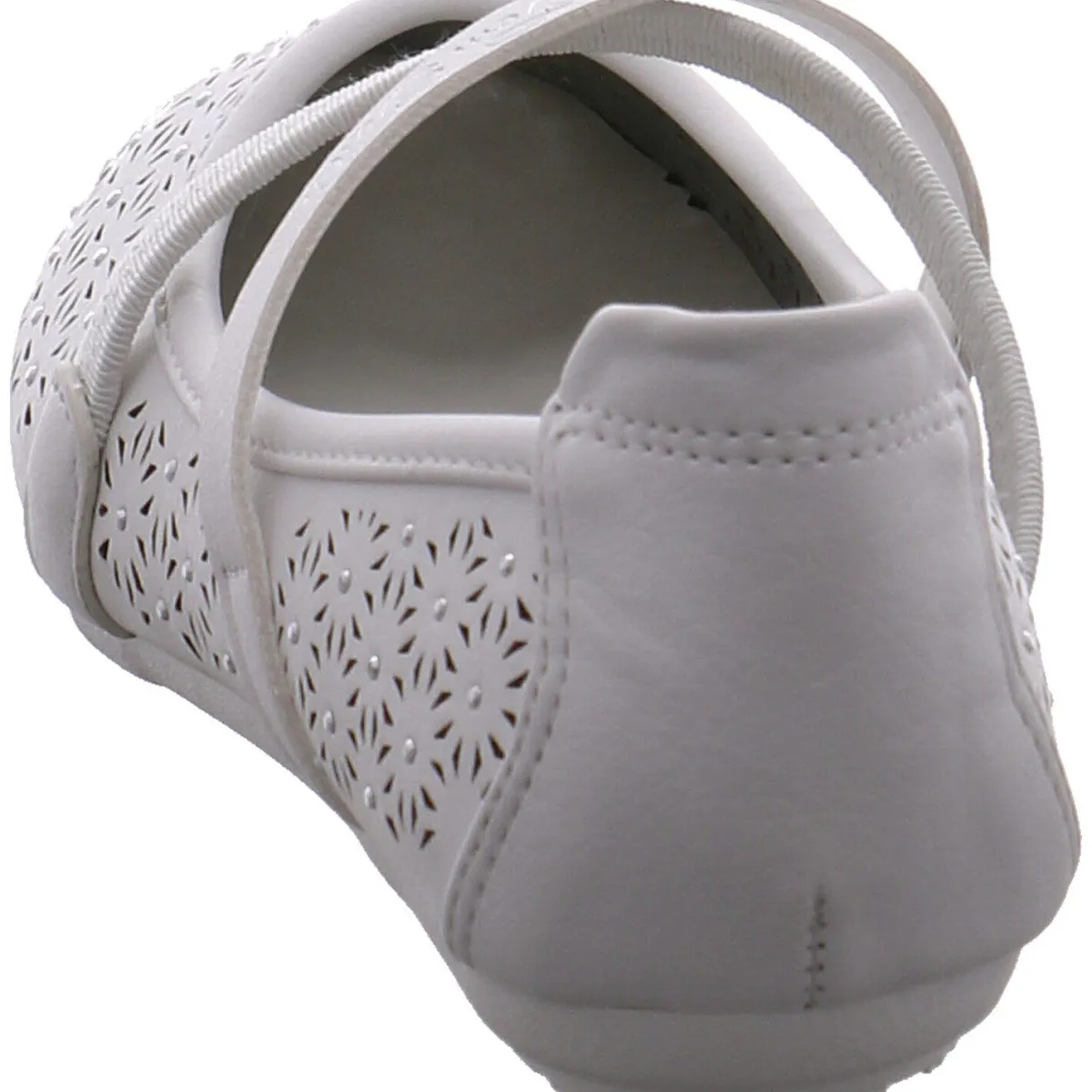 Individuell gestaltetes Obermaterial aus Kunstleder in Weiß wird durch die überkreuzten Riemen, mit Marken Logo und Gummipanels, optisch noch aufgewertet.