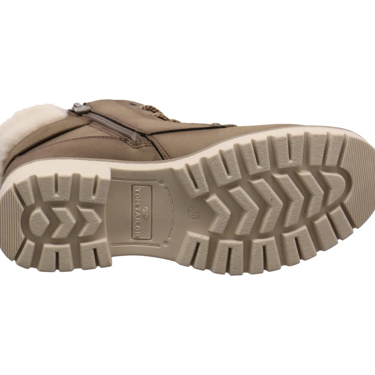 Ein besonderer Hingucker sind die Ziernähte und farblich abgesetzten Schnürsenkel sowie der Schaftrand mit weichem Fellimitat. Eine kleine Schnalle am Schaft wertet den Winterstiefel optisch auf.