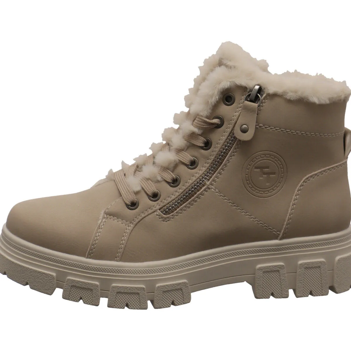 Das soft weiche Obermaterial aus authentisch genarbtem Kunstleder und die stylische Schnürung in kombination mit dem Zierreißverschluss an der Außenseite ziehen Blicke auf sich. Ein weiteres Highlight ist das seitliche Markenlogo und die Ziernähte. Durch den Reißverschluss an der Innenseite ist der Einstieg in den Schuh besonders komfortabel.