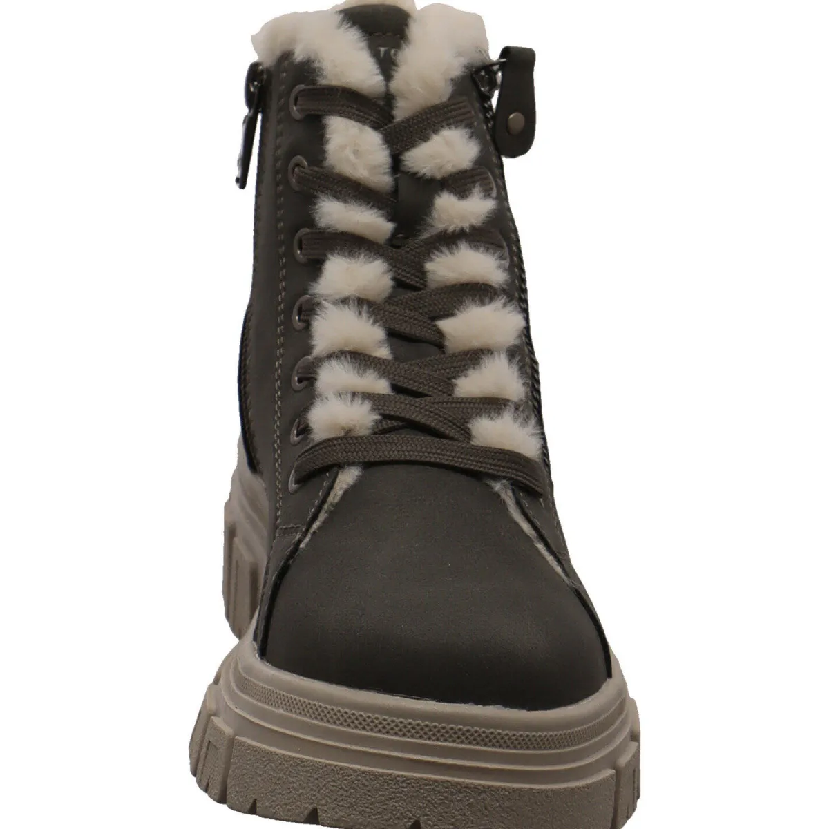 Das soft weiche Obermaterial aus authentisch genarbtem Kunstleder und die stylische Schnürung in kombination mit dem Zierreißverschluss an der Außenseite ziehen Blicke auf sich. Ein weiteres Highlight ist das seitliche Markenlogo und die Ziernähte. Durch den Reißverschluss an der Innenseite ist der Einstieg in den Schuh besonders komfortabel.