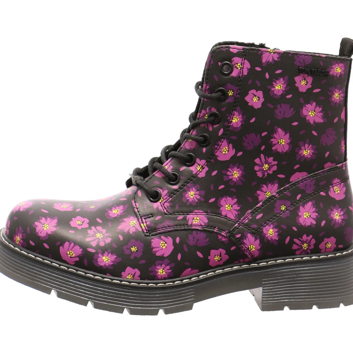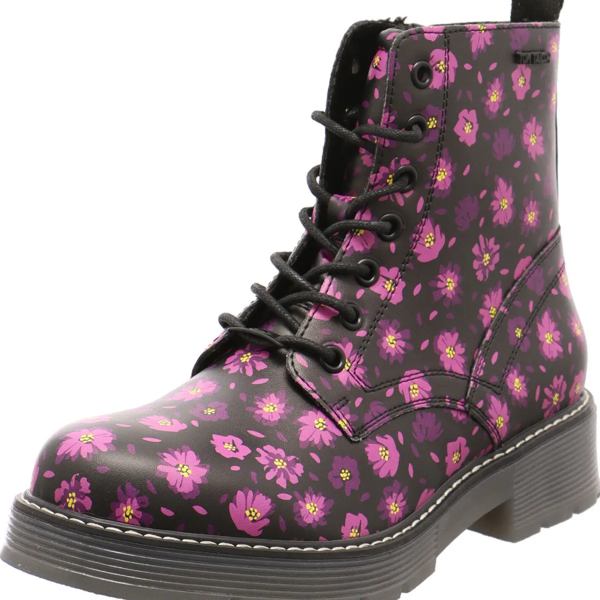 Ein absoluter Eyecatcher ist dabei das Obermaterial aus Kunstleder in Schwarz, welches mit einem Allover Blumen Print in Pink verziert ist. Damit kommt auch an trüben Herbst Tagen automatische Gute Laune auf.