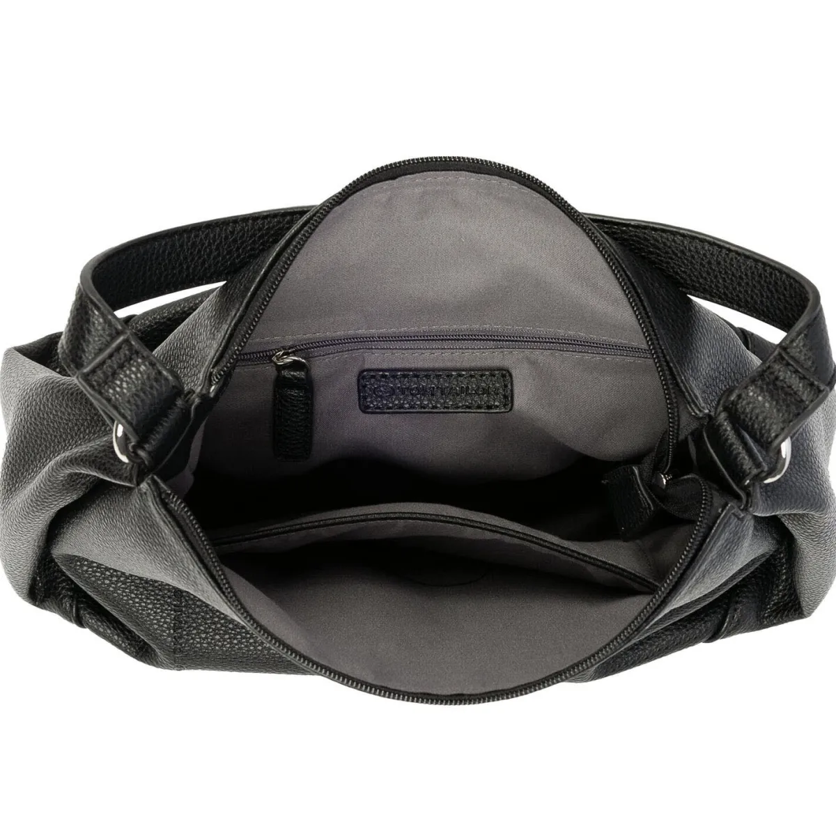 Hingucker sind die trendige Faltenlegung an den Seiten und die authentische Narbung. Die Handtasche ist der ideale Begleiter für deinen Stadtbummel, denn sie verstaut übersichtlich und elegant deine liebsten Errungenschaften.