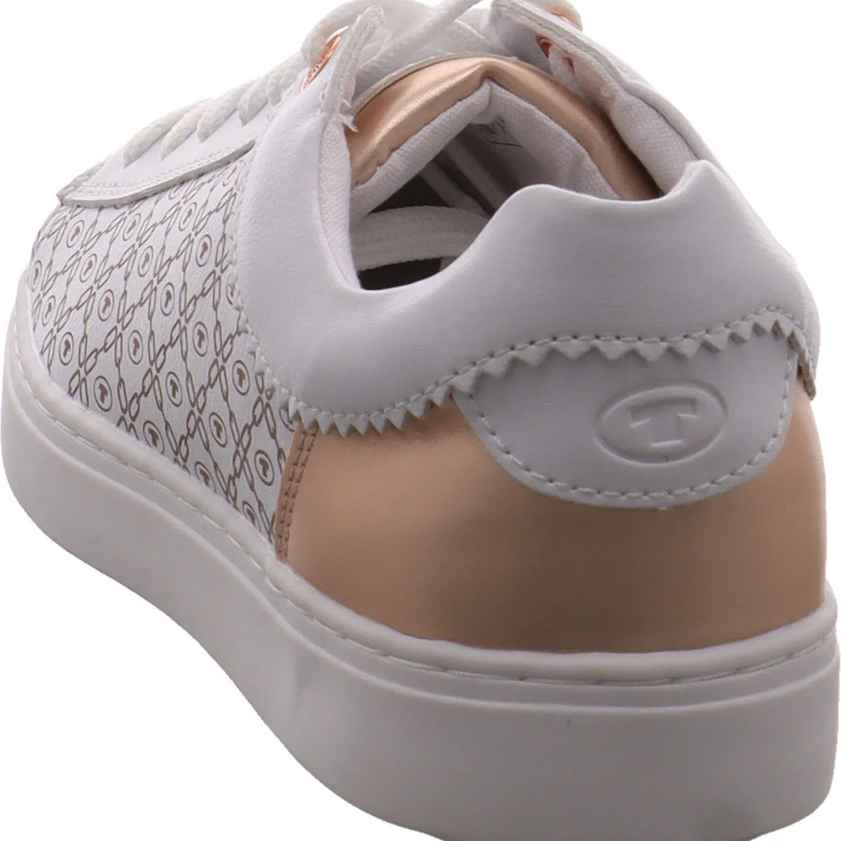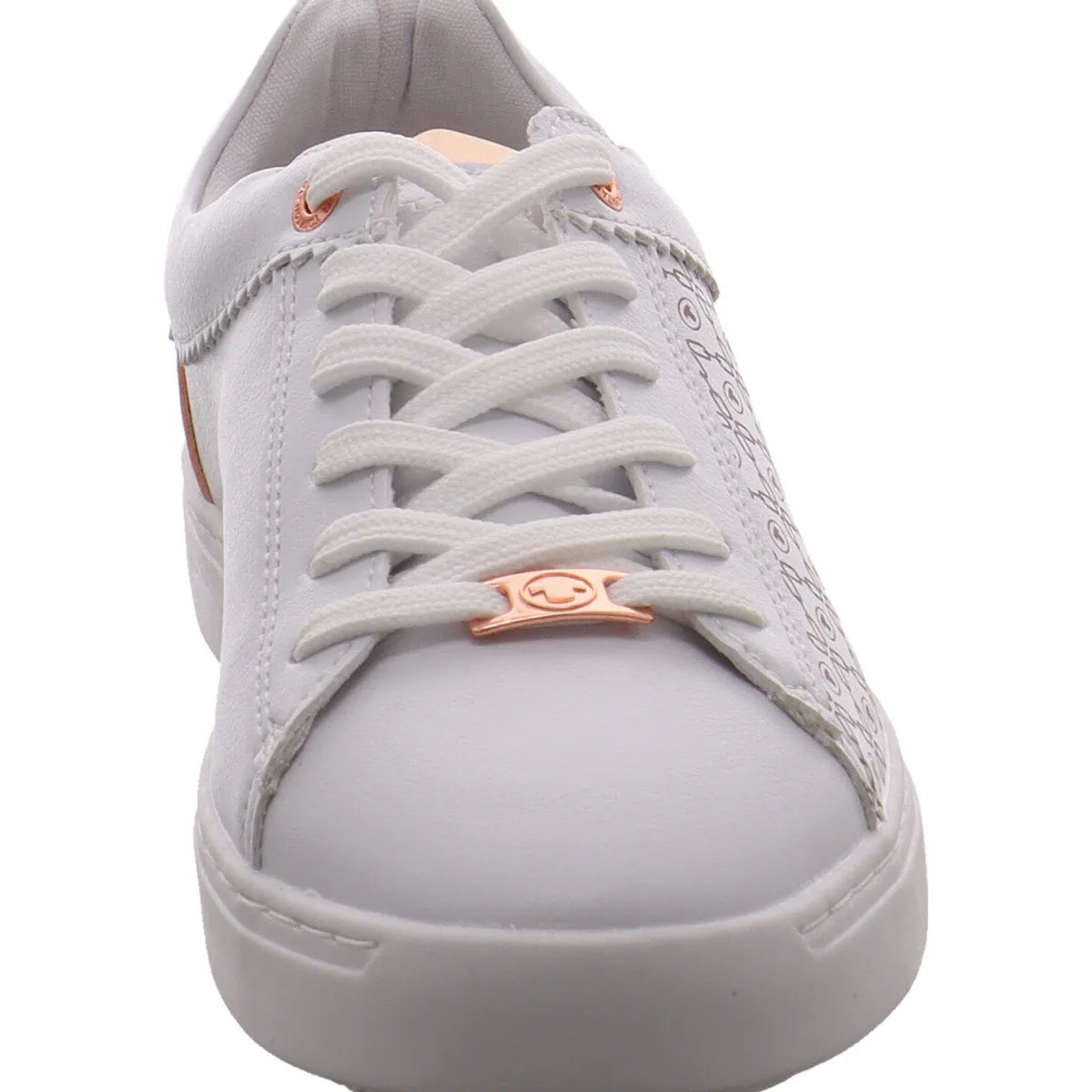 Das Obermaterial aus Kunstleder in Weiß, ist an den Seiten mit einem individuellen Print versehen. Einsätze an der Ferse, auf der Zunge und Schnürsenkelösen in Rose mit einem Metallic Schimmer, machen den Schuh zu einem tollen Eyecatcher.