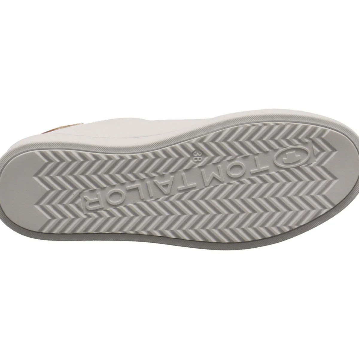 Das Obermaterial aus Kunstleder in Weiß, ist mit kleinen Details in Bast Optik in Bunt auf der Zunge, der Rückseite vom Schaft und an der Seite versehen. Kleine Lasercuts an den Seiten runden den modernen Look perfekt ab.