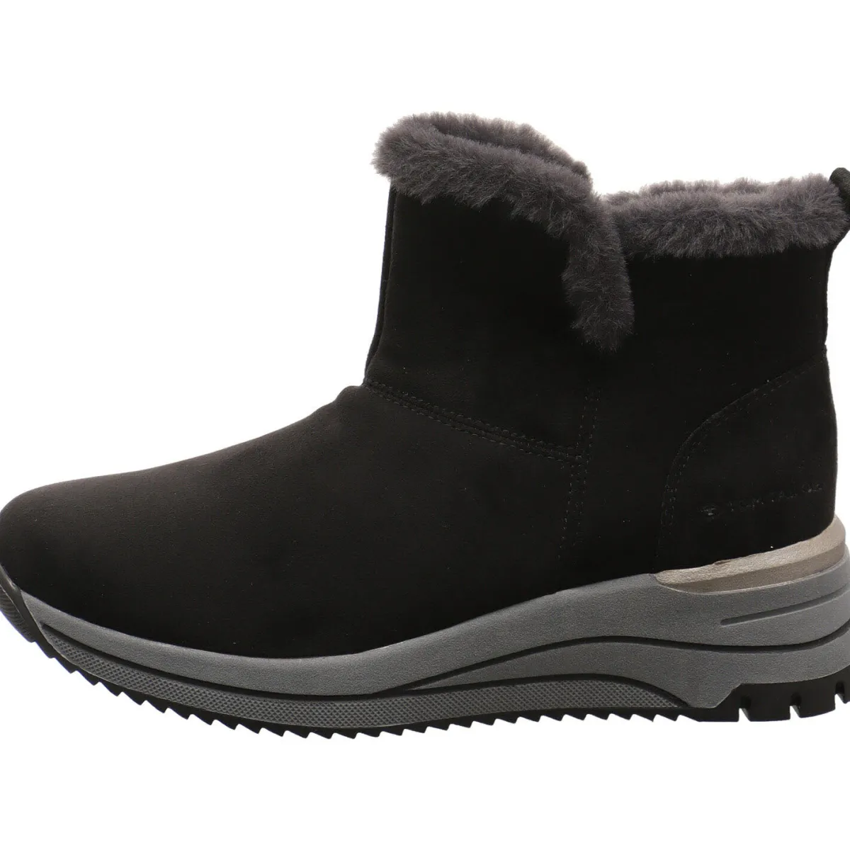 Das Obermaterial aus Textil in Schwarz, ist angenehm weich und am Schaft mit einer schönen Plüschkante versehen.