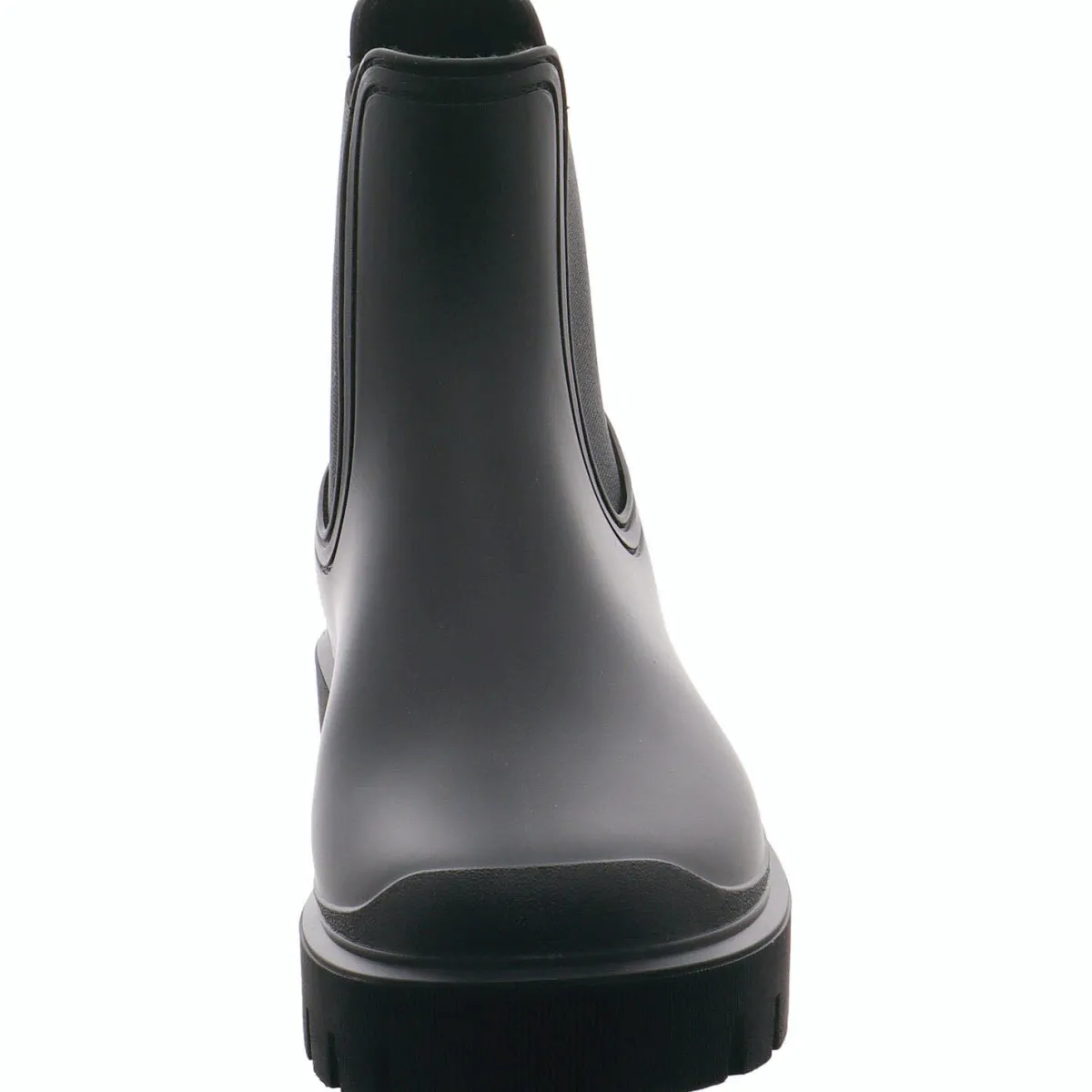 Gefertigt aus Synthetik in Schwarz ist er an den Seiten mit Gummipannels versehen, diese sorgen für einen leichten Einstieg und geben dem Stiefel, den Look eines Chelsea Boots.