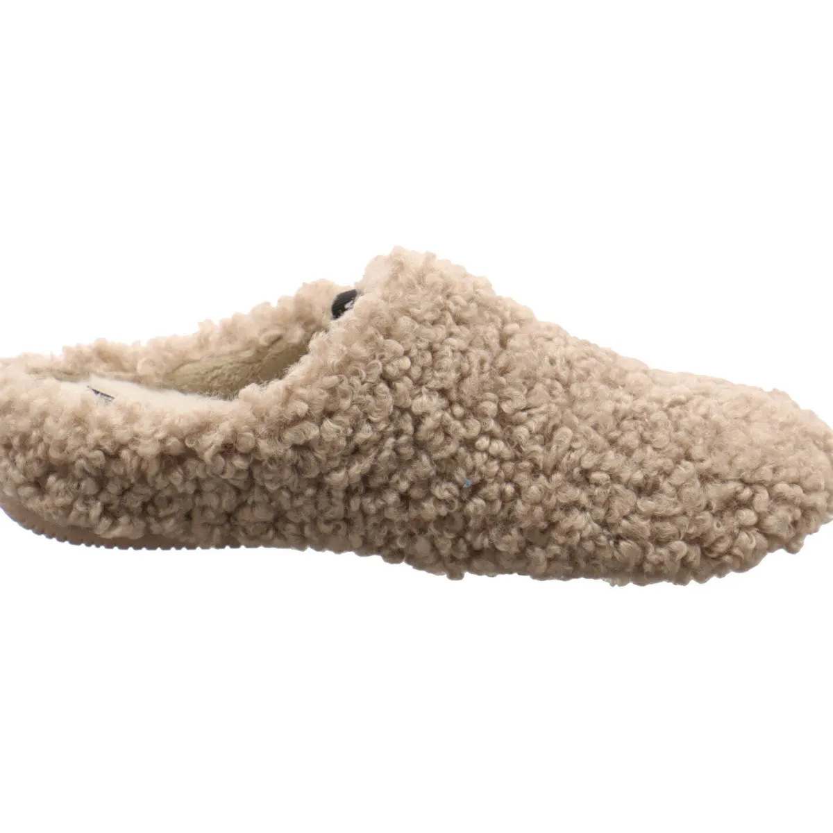 Das kuschelig weiche Textil Obermaterial in hellem Braun hält die Füße auch im Winter garantiert warm und die Gummisohle bietet gleichzeitig einen sicheren Halt. Die flauschig weiche Innensohle sorgt für besonderen Tragekomfort.