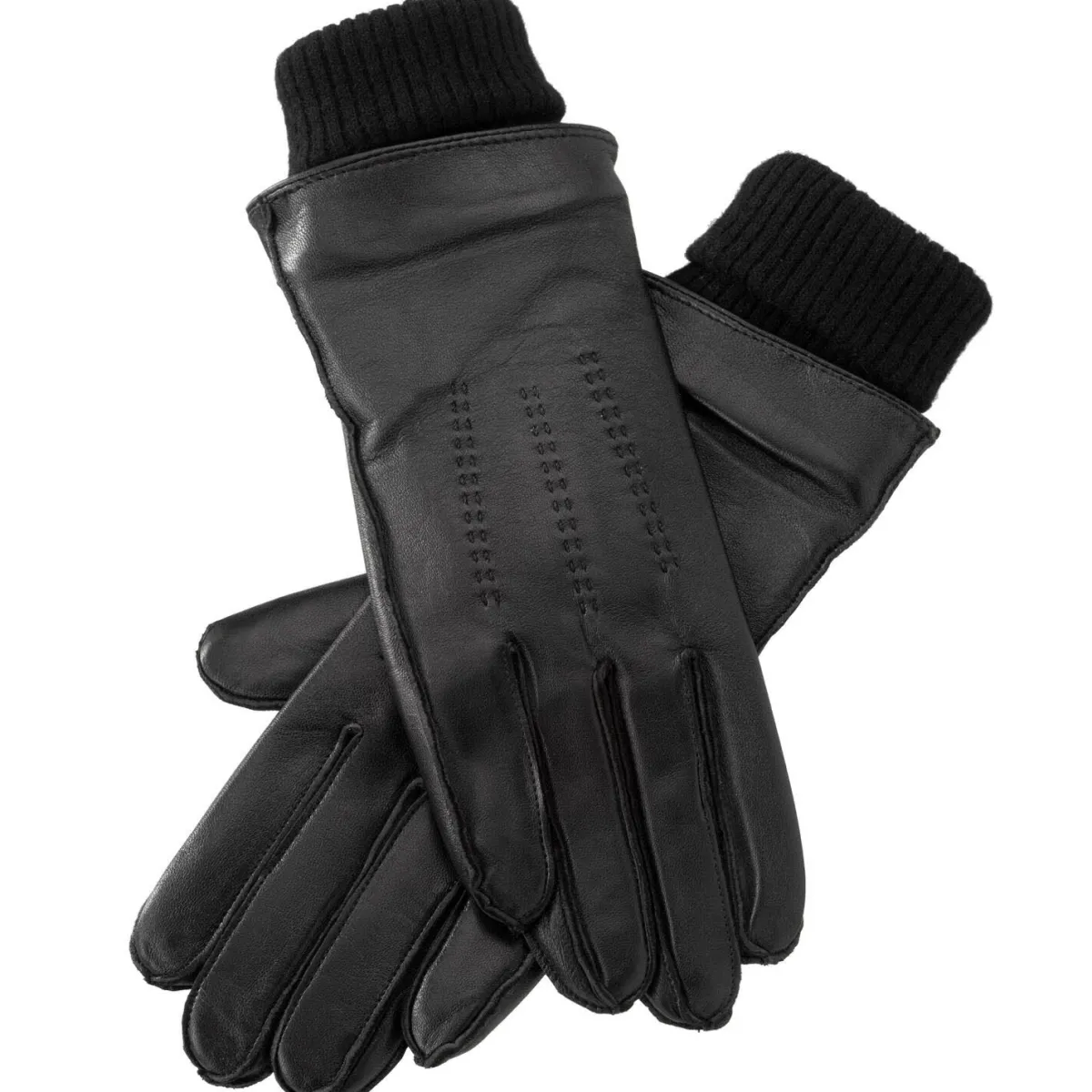 Leather gloves with knitted cuffs