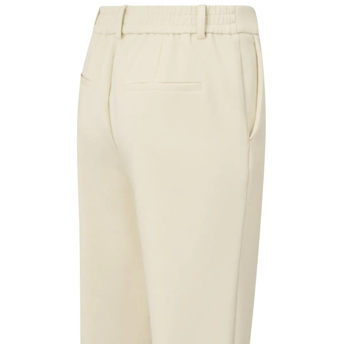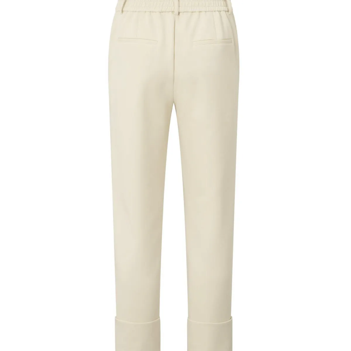 Die Hose wurde aus einem angenehmen Mischgewebe in Beige gefertigt. Sie hat eine normale Passform mit hohem Bund, welcher einen Dehngummi an der Rückseite hat und sich dadurch optimal deiner Figur anpasst. Sie ist mit Gürtelschlaufen, seitlichen Taschen und Paspeltaschen auf dem Gesäß gearbeitet. Das Bein wird nach unten hin schmal und ist mit einem fixierten, breiten Beinabschluss versehen. Dieser verleiht der Hose einen modernen Look und macht sie zu einem Blickfang. Du kannst sie lässig oder schick für die Arbeit kombinieren.