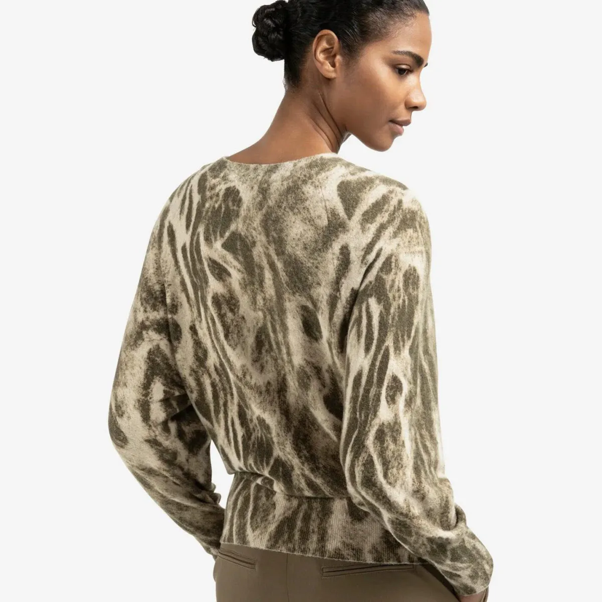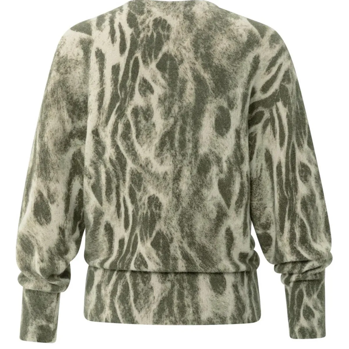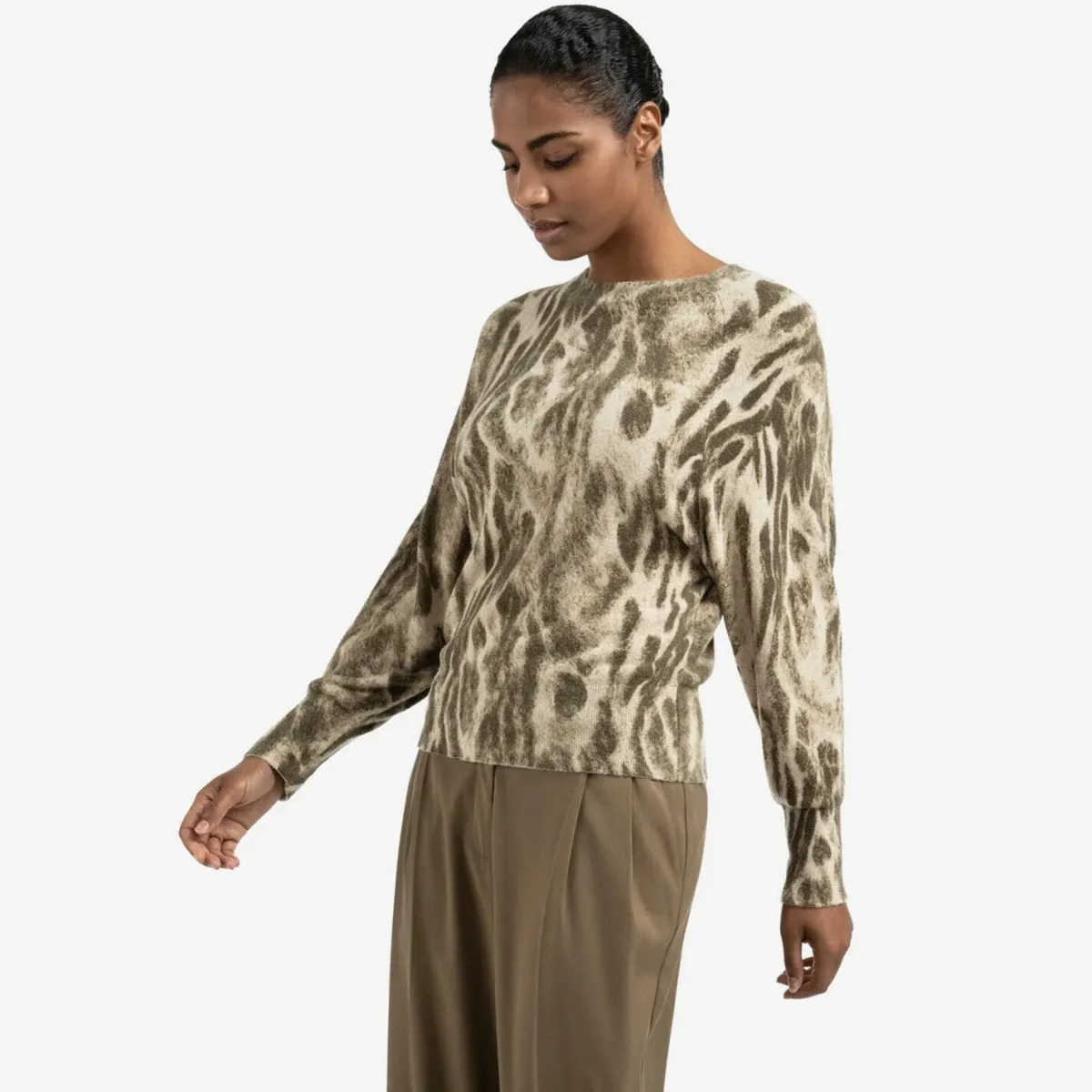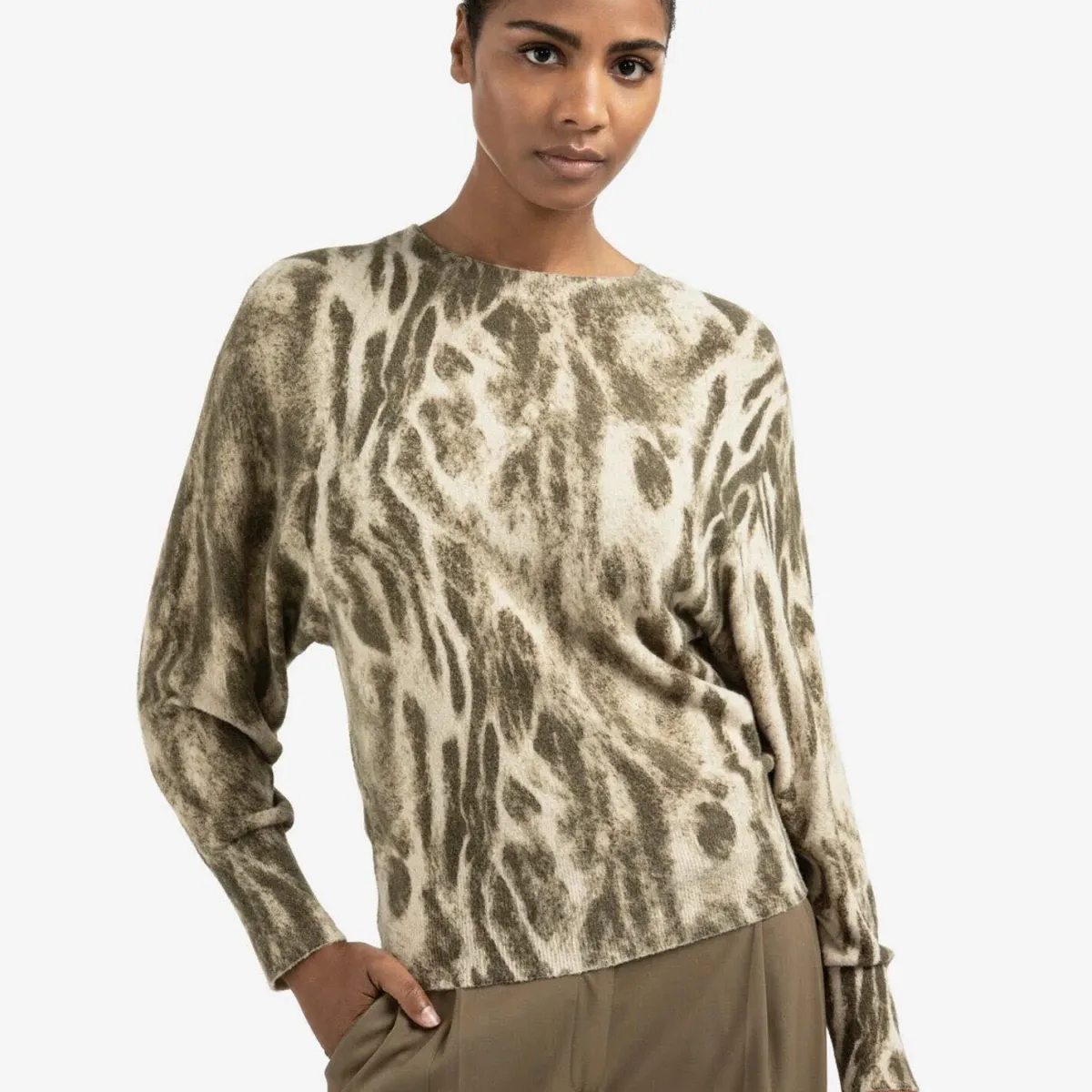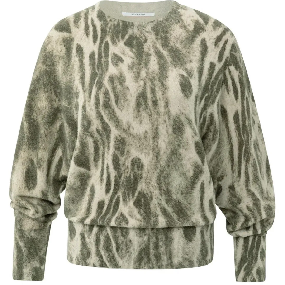 Das weiche Strickgewebe in Braun ist mit einem modernem Print verziert. Er hat einen Rundhalsausschnitt und lange Ärmel mit Rippstrickbündchen. Die lockere Passform sorgt für ein angenehmes Tragegefühl.