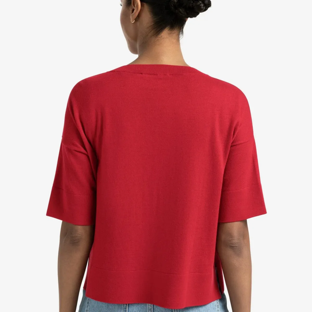 Sie wurde aus einem feinen Strickgewebe in Rot garbeitet. Durch ihren hohen Anteil an Seide ist sie besonders hochwertig und luftig. Genau das richtige für den Sommer. Du kannst sie super einzeln tragen oder in kombination mit einem Top.