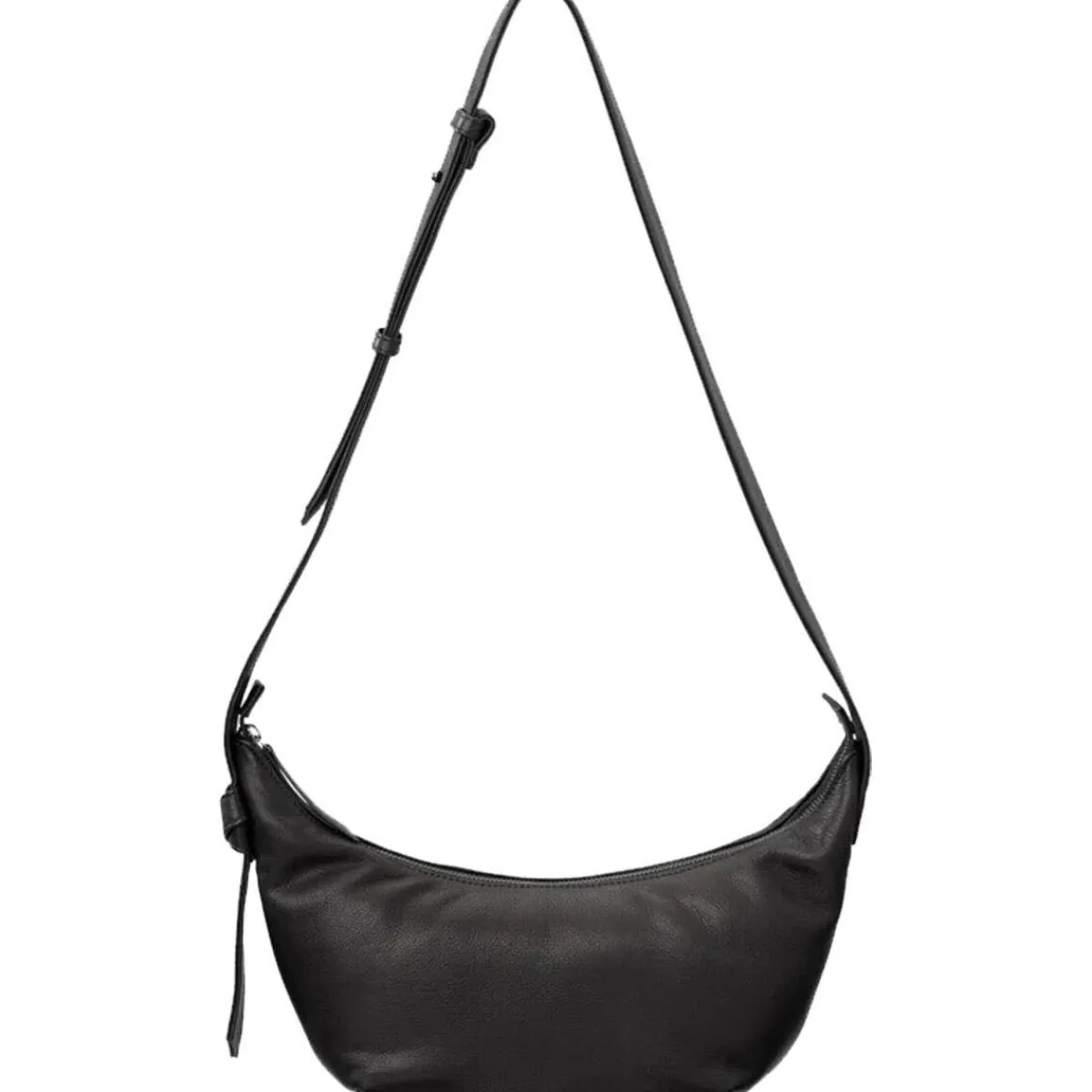 Die Schultertasche ist in eleganter Halbmondform aus geschmeidigem Leder in Schwarz gearbeitet und verstaut alle Dinge auf die du im Alltag nicht verzichten möchtest.