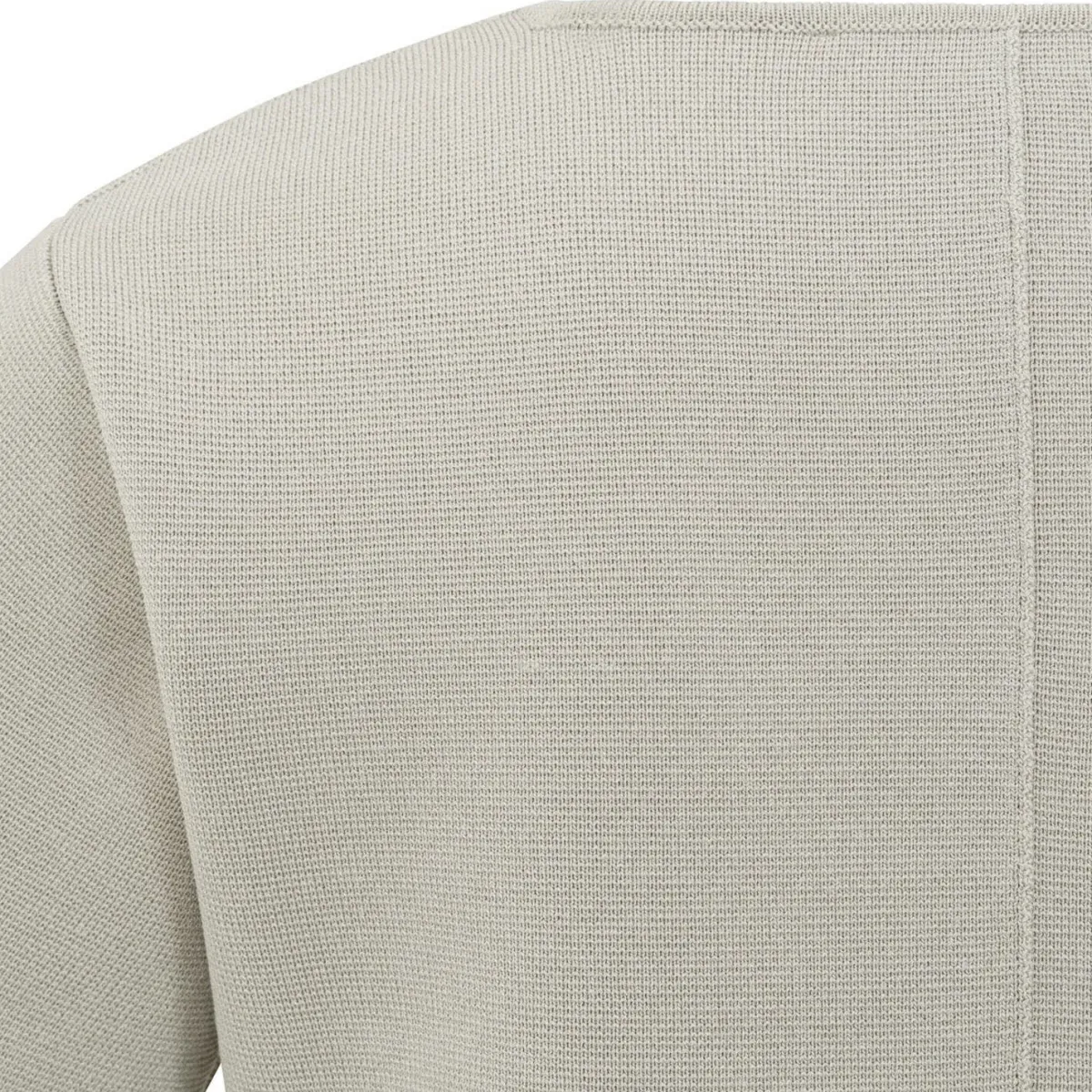 Es wurde aus einem Strickmaterial in Beige gefertigt und wirkt optisch wie eine Weste, als Besondheit dazu die kurzen Ärmel.